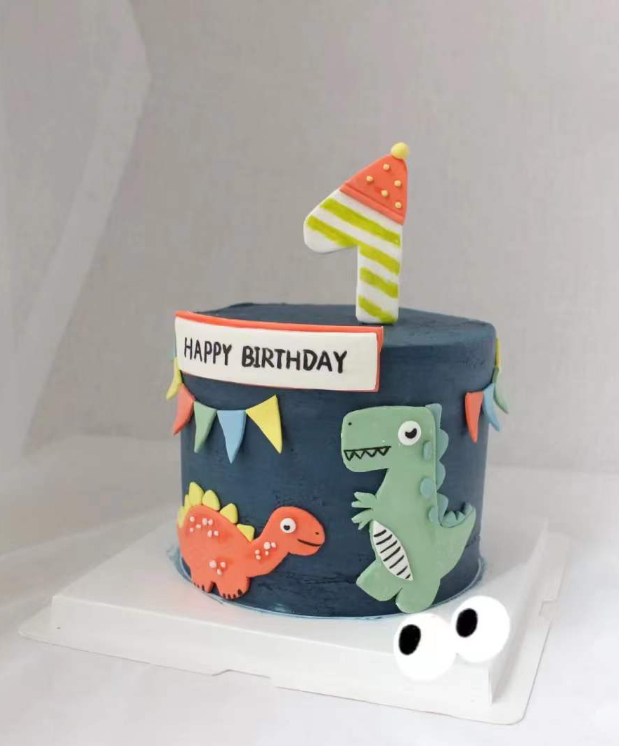 小恐龙蛋糕 翻糖牌牌(提前24小时预订 深色奶油容易沾嘴巴且略微发苦/食用时请刮去深色部分/介意慎拍)