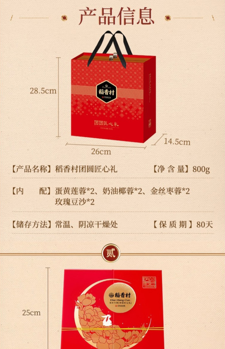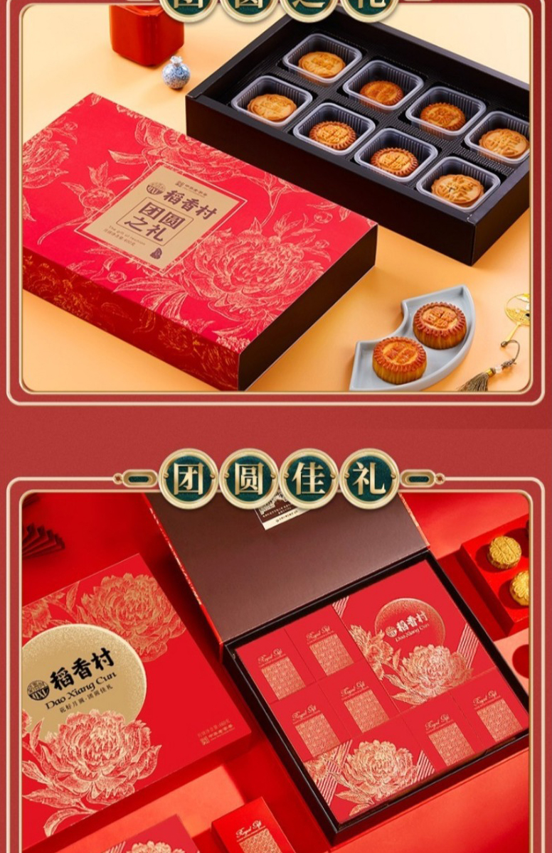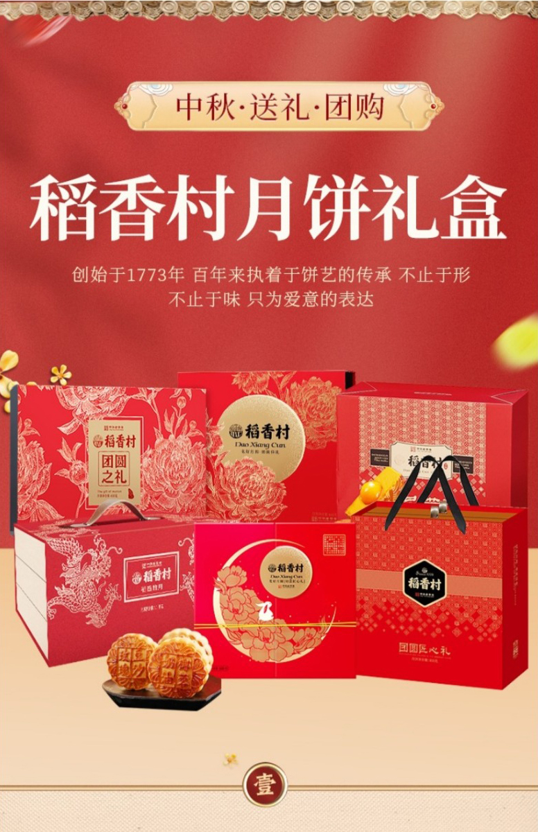 【稻香村月饼礼盒 】蛋黄莲蓉玫瑰豆沙月饼 团圆之礼400g