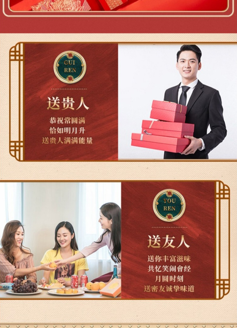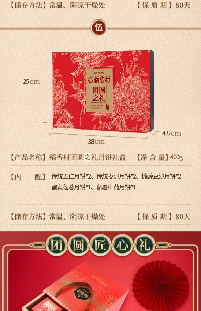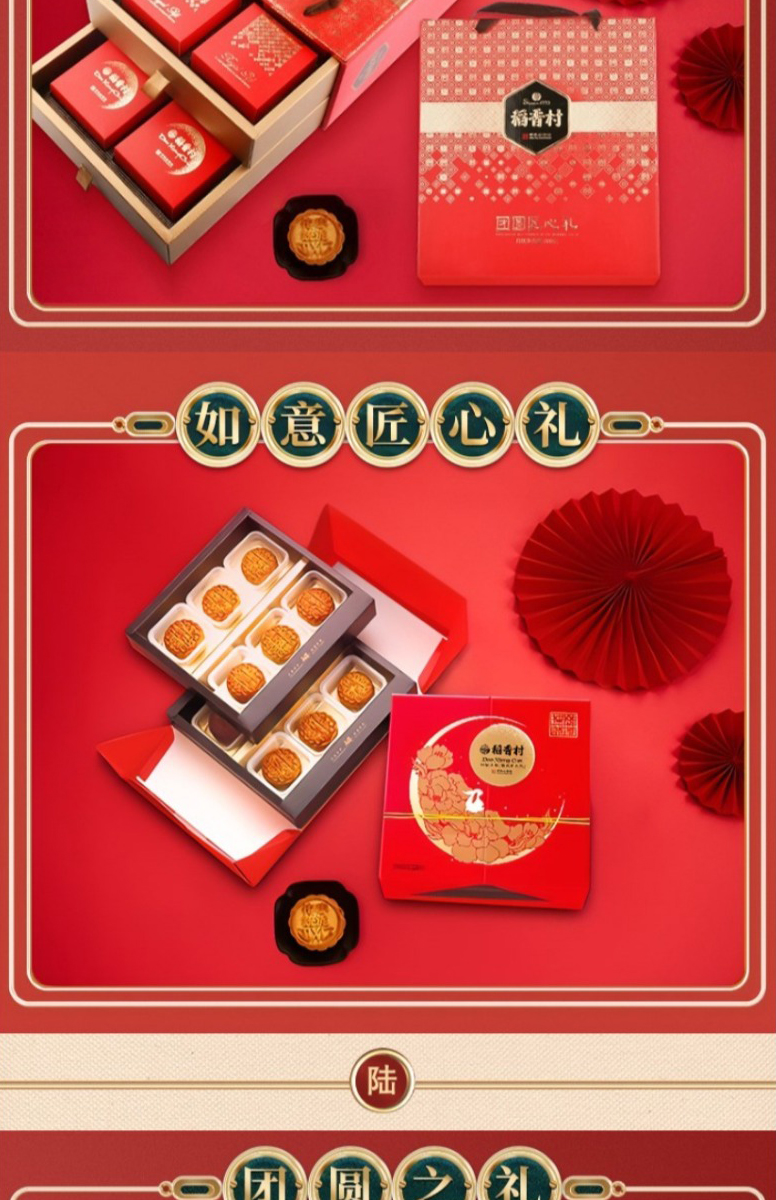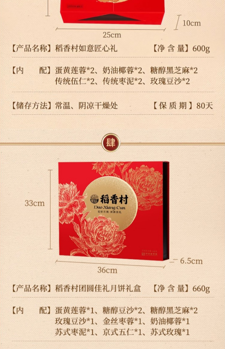 【稻香村月饼礼盒 】蛋黄莲蓉玫瑰豆沙月饼 团圆之礼400g