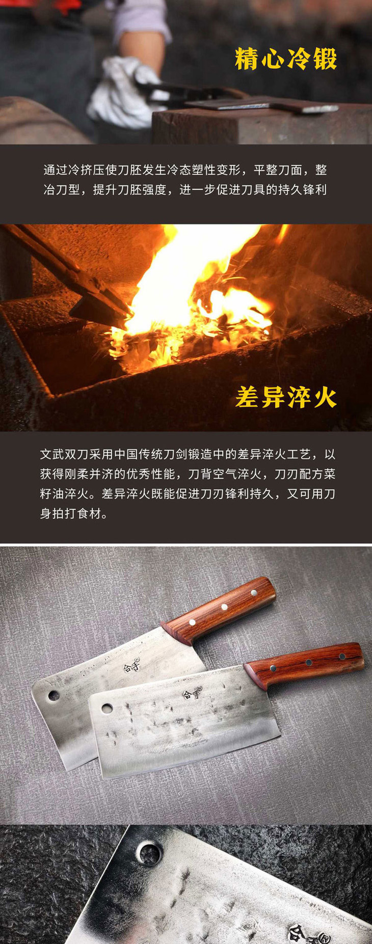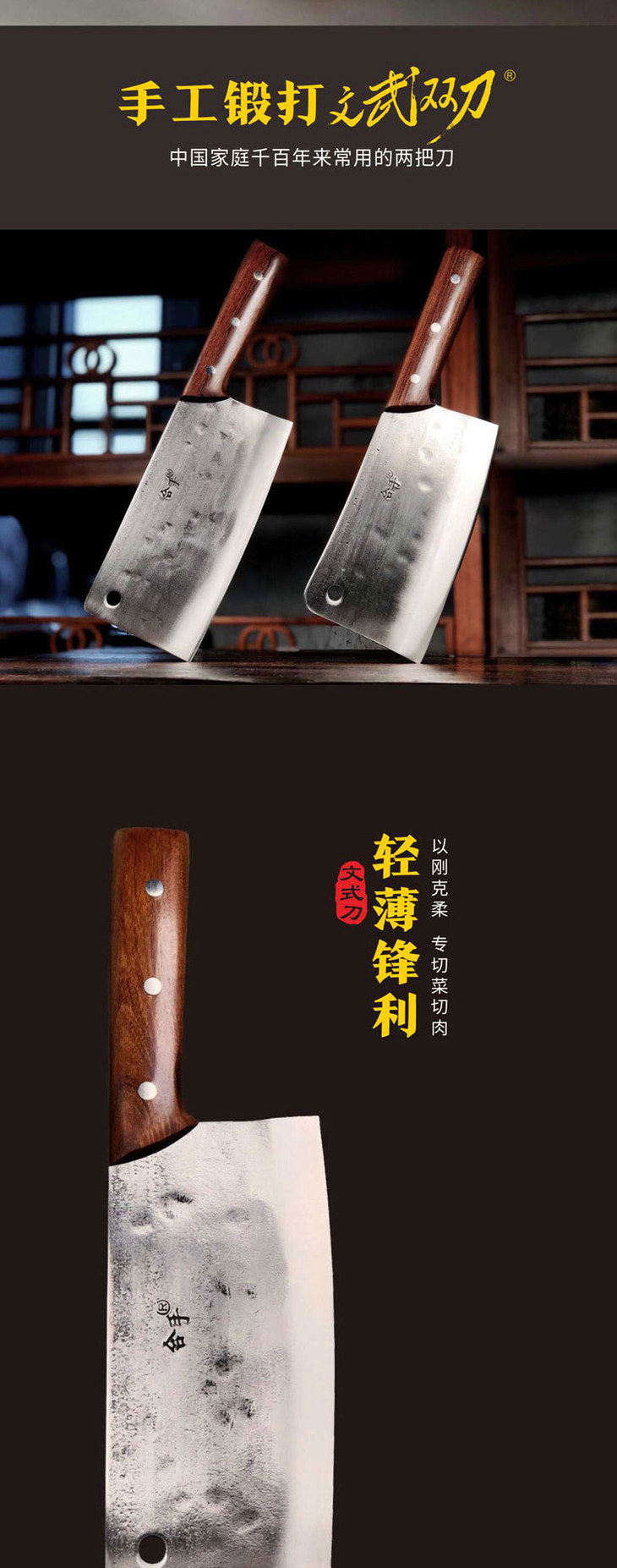 拿铁铁器 | 合手菜刀 中华家刀两件套 手工锻打S1文武双刀家用厨房切片刀砍骨刀