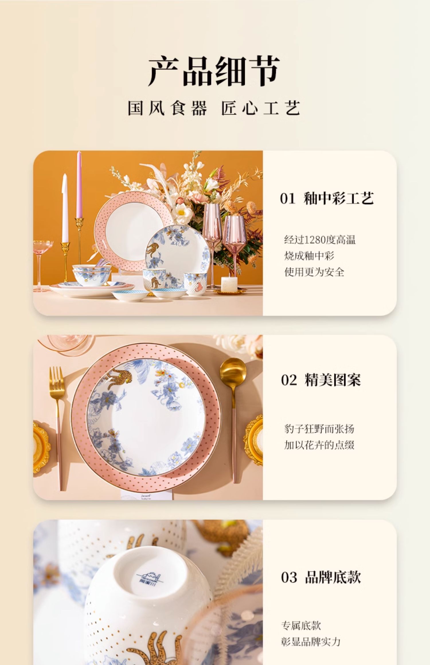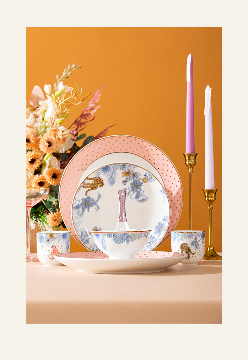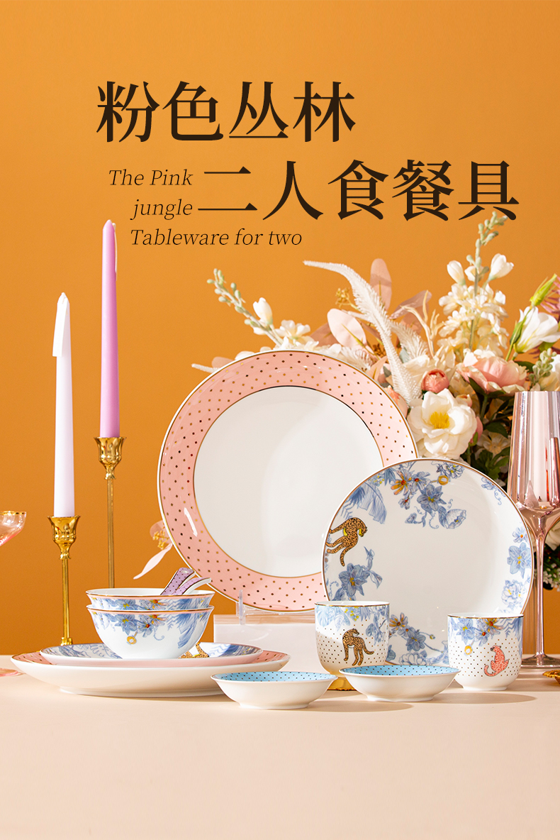 陶溪川 陶溪花园-粉色丛林二人食餐具