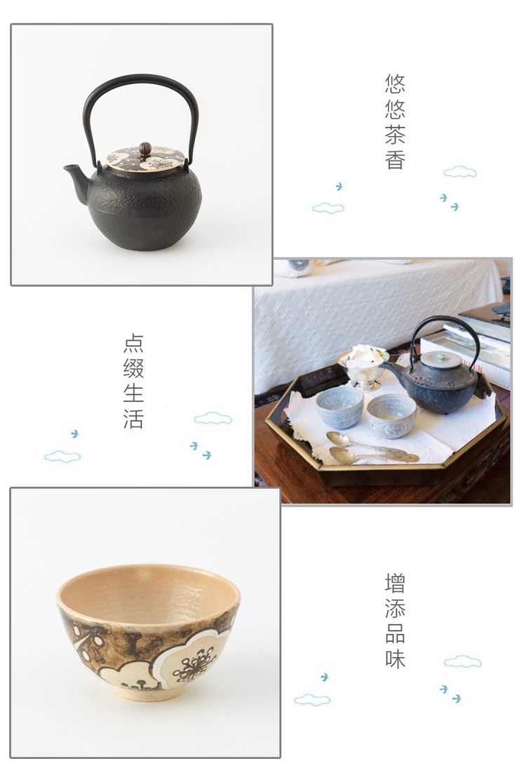 【T.NISHIKAWA】日本纯手工梅花纹茶具铸铁茶壶茶杯