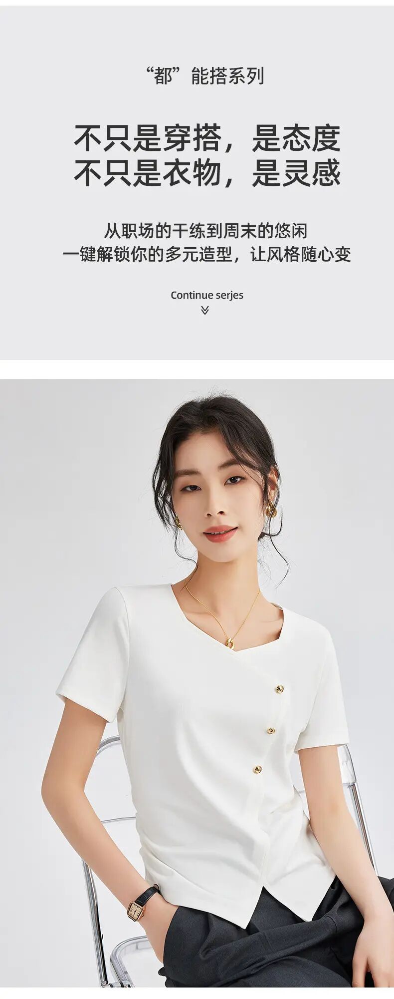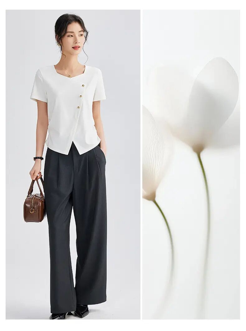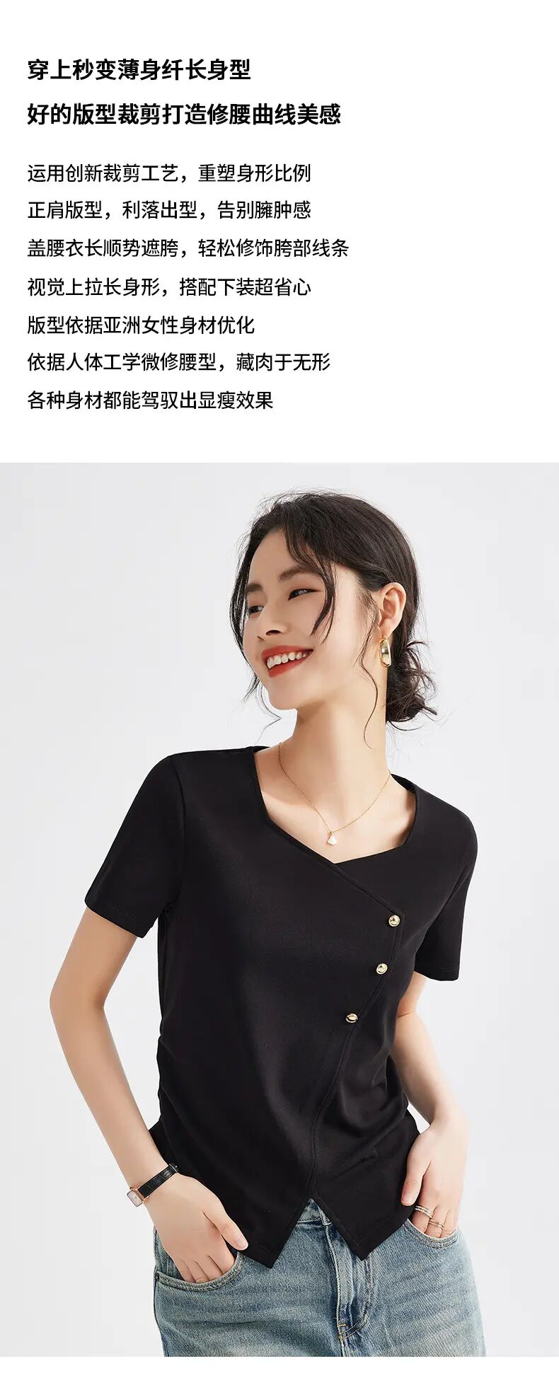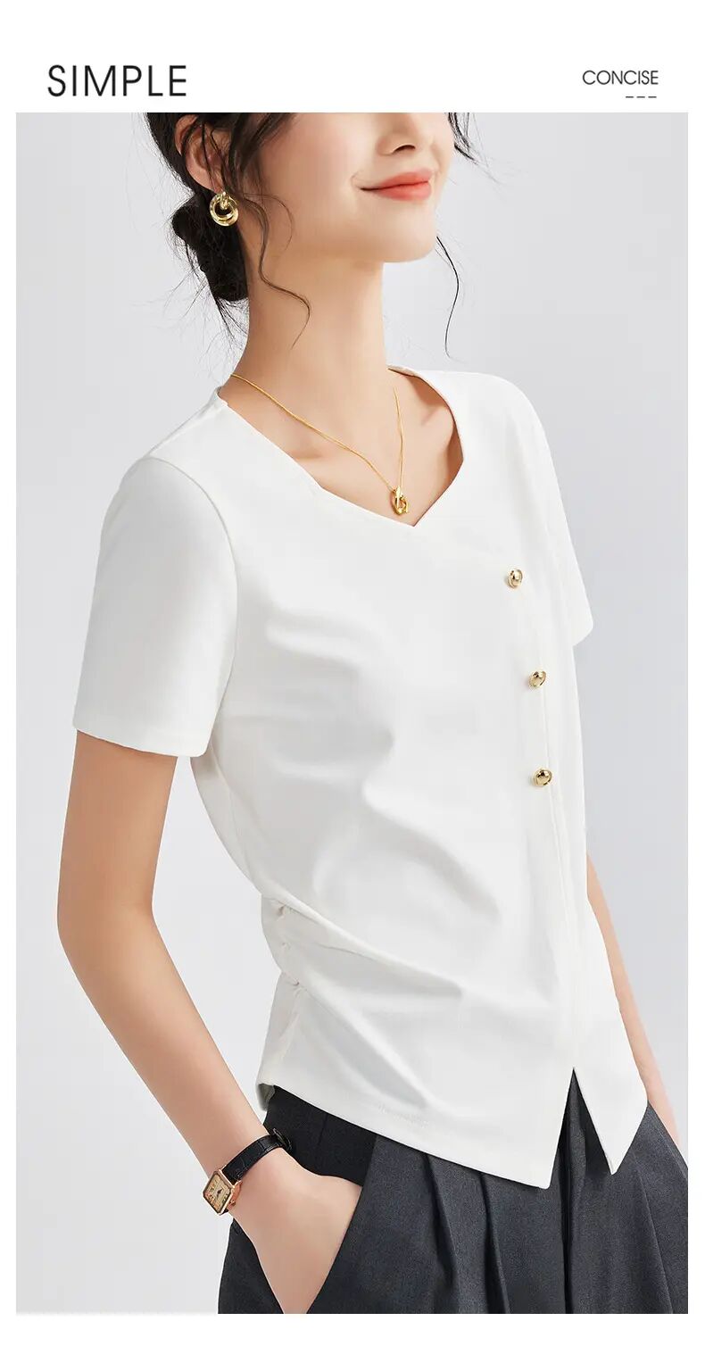 【自】全新升级【铂金会员100/天猫129/差价29】(01609) 洛诗琳正肩方领短袖t恤女夏季2025新款高端不规则半袖