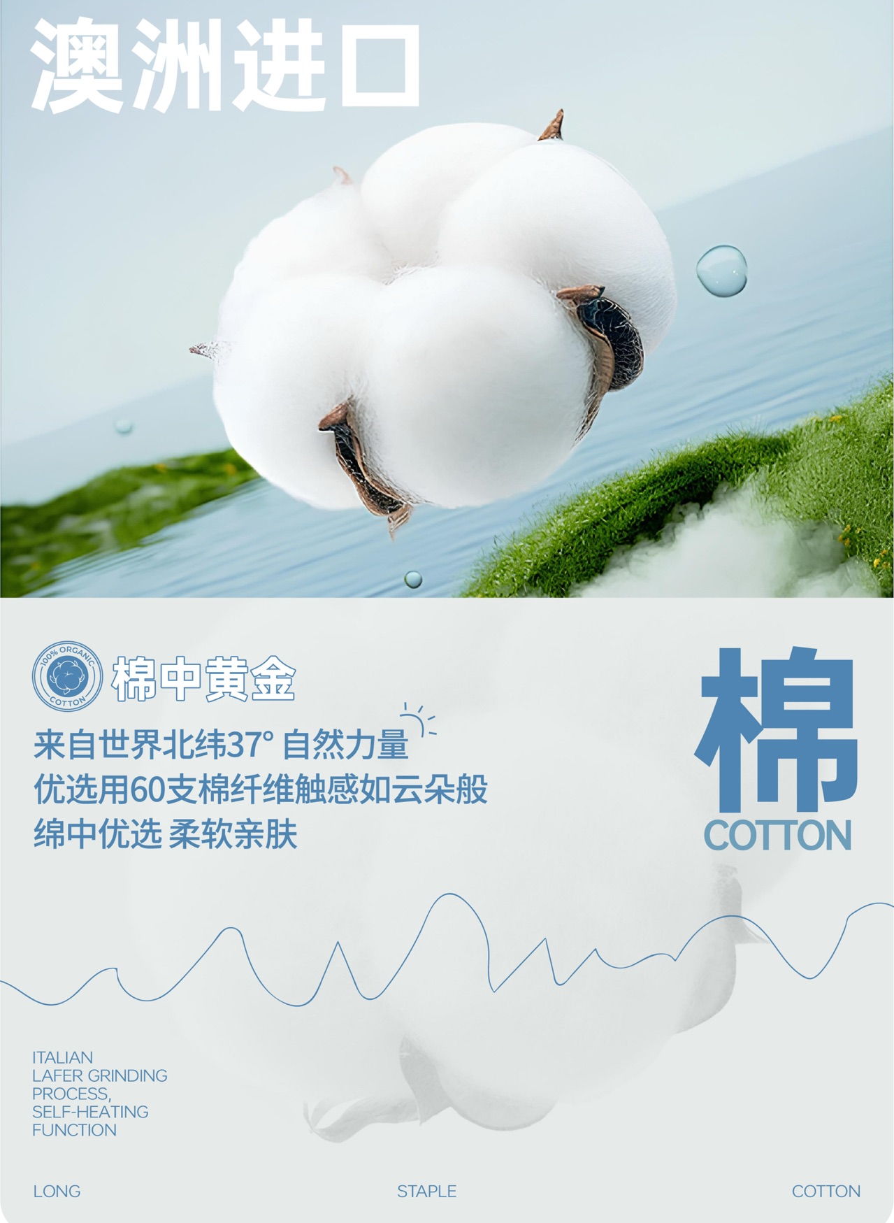 进口澳绒面料,在磨毛保暖基础上,做了全新的面料升级,28%腈纶+36%人棉+28%精梳棉+8%氨纶,权威认证的独家面料,贴身穿着,优点兼具透气和保暖。