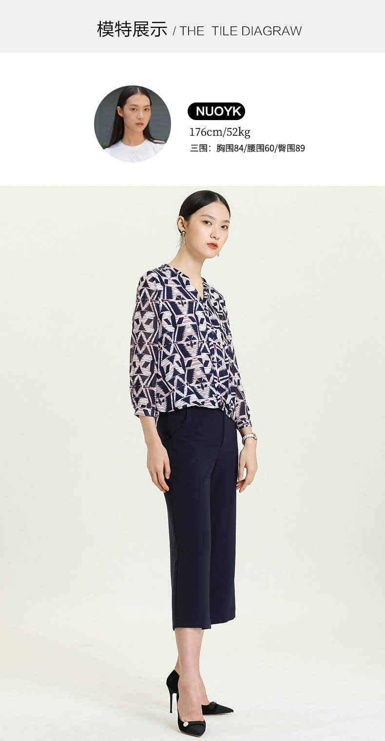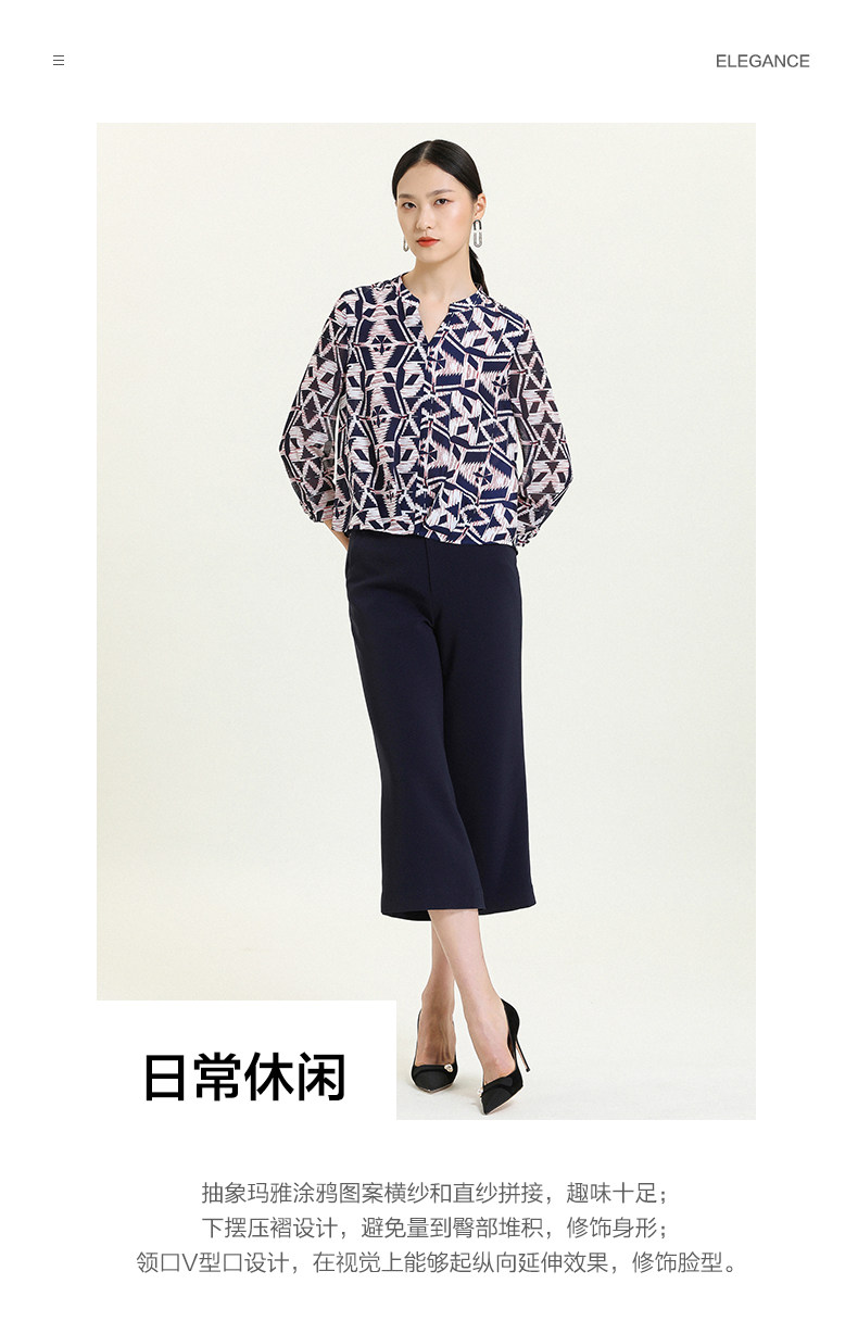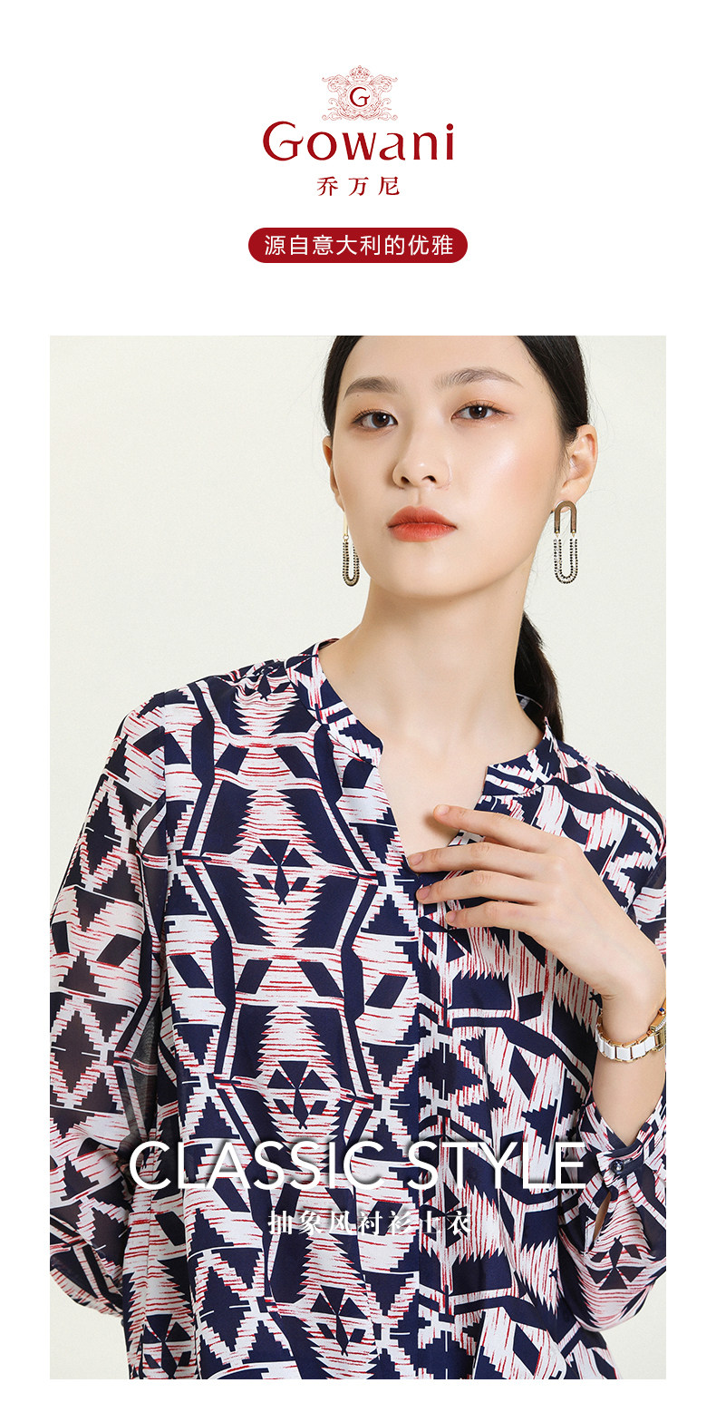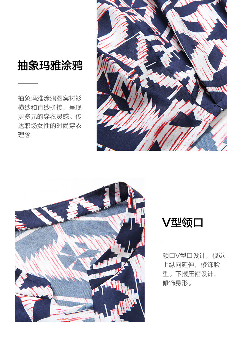 乔万尼新款衬衫女V领抽象涂鸦图案设计感宽松显瘦通勤风上衣ES3C567