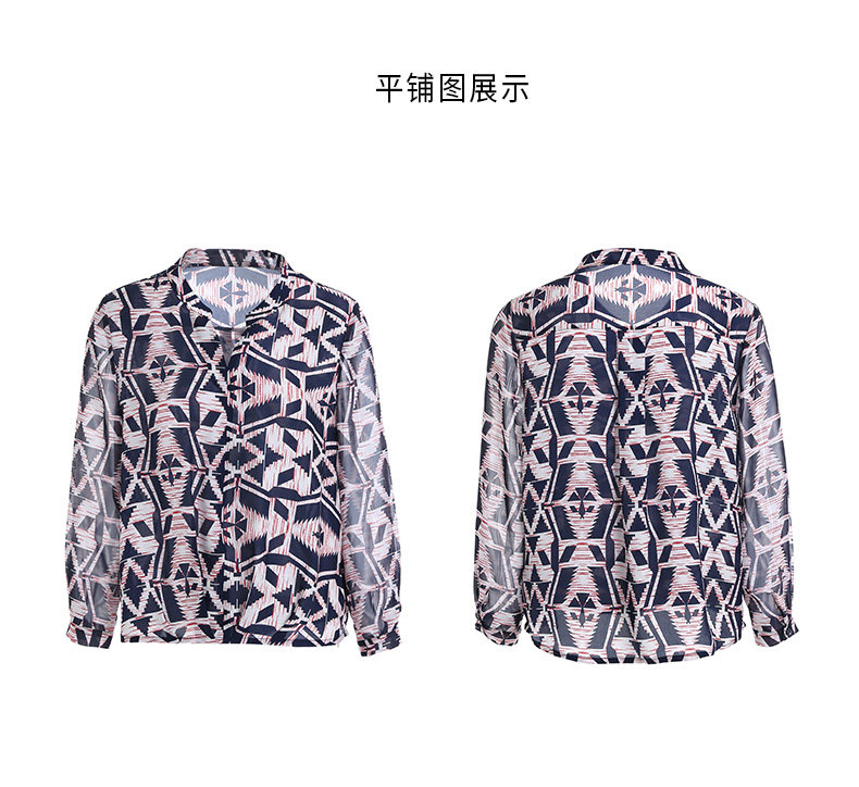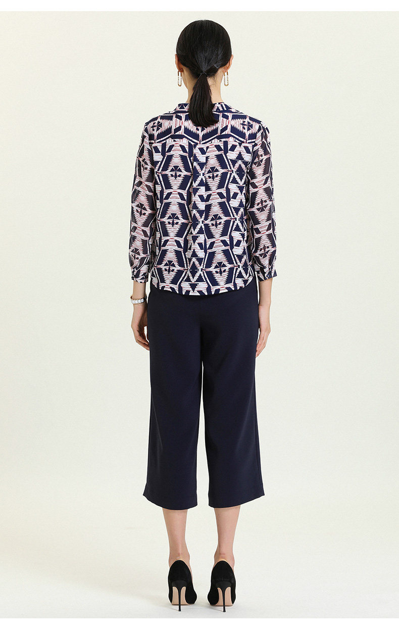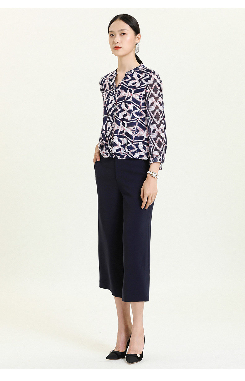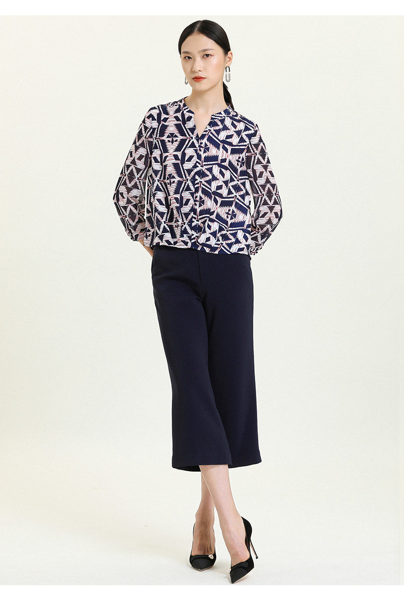乔万尼新款衬衫女V领抽象涂鸦图案设计感宽松显瘦通勤风上衣ES3C567