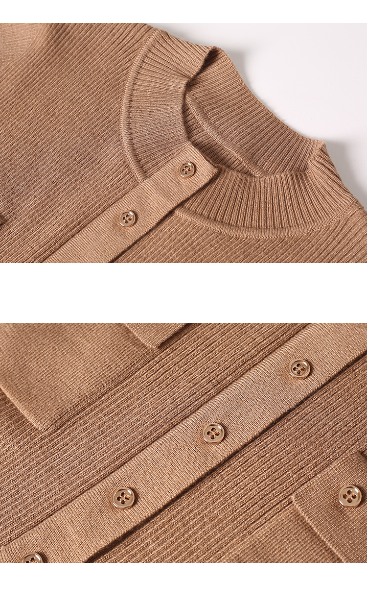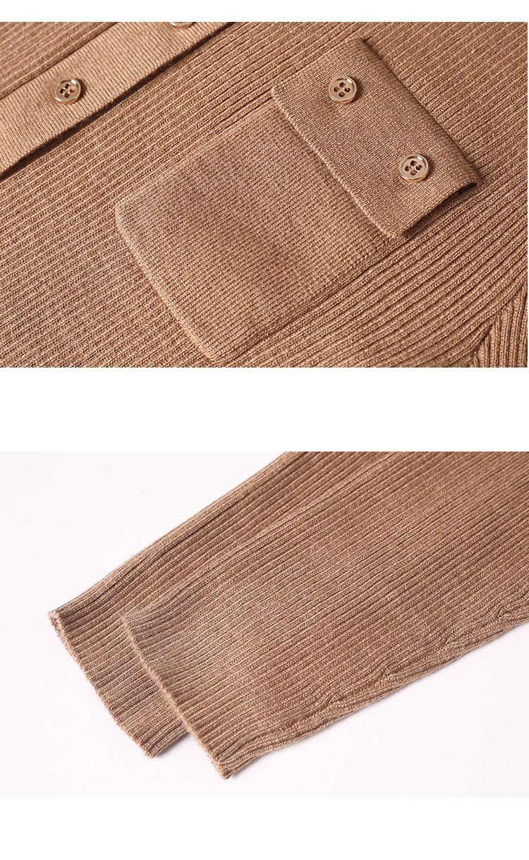EITIE/爱特爱可机洗羊毛通勤气质衬衫式显瘦纯色针织开衫秋新款C2301220