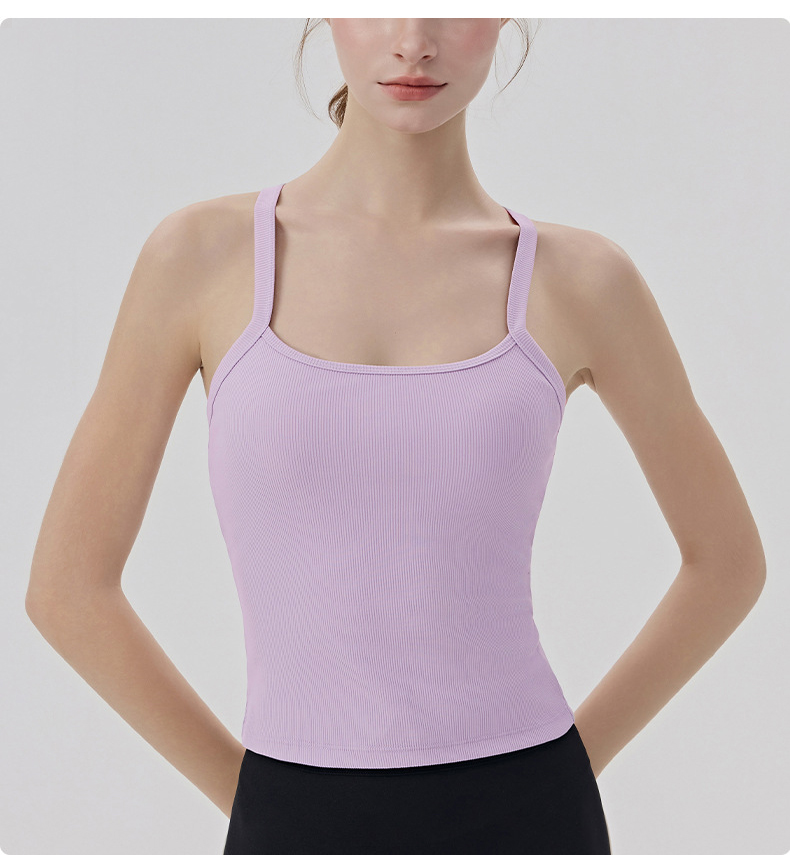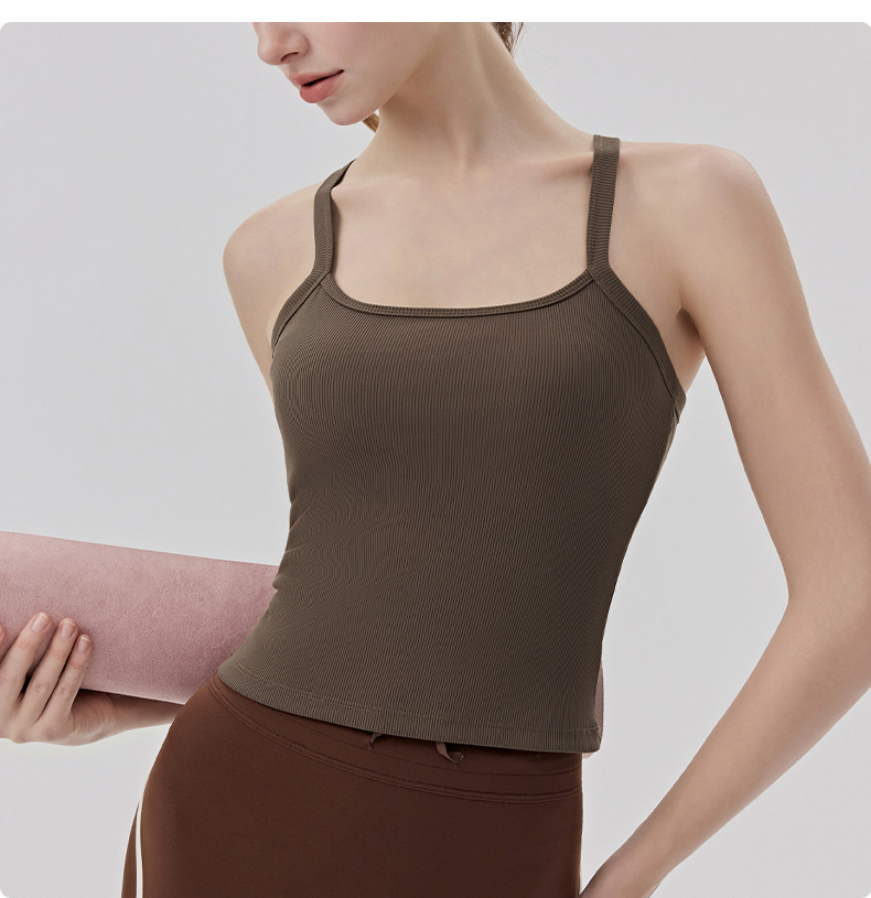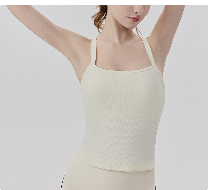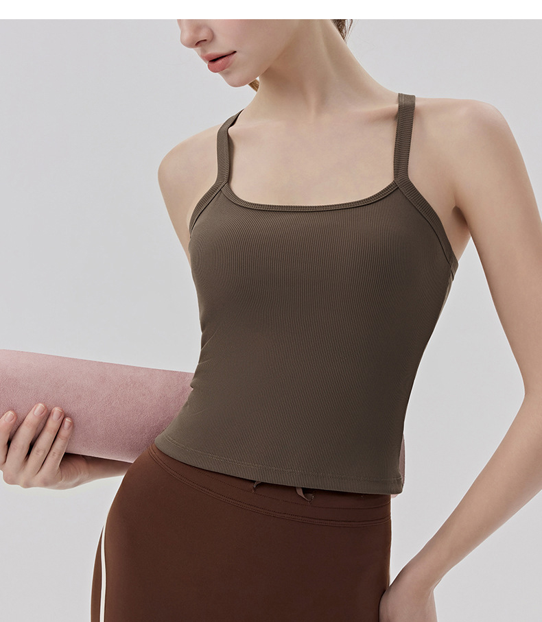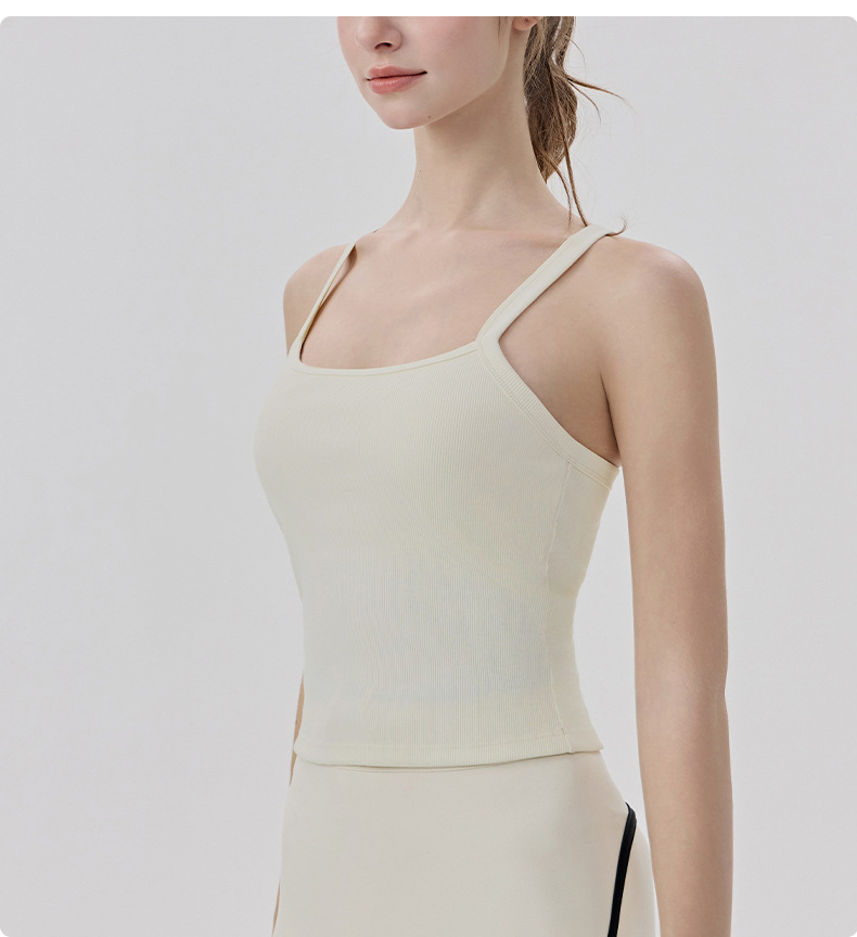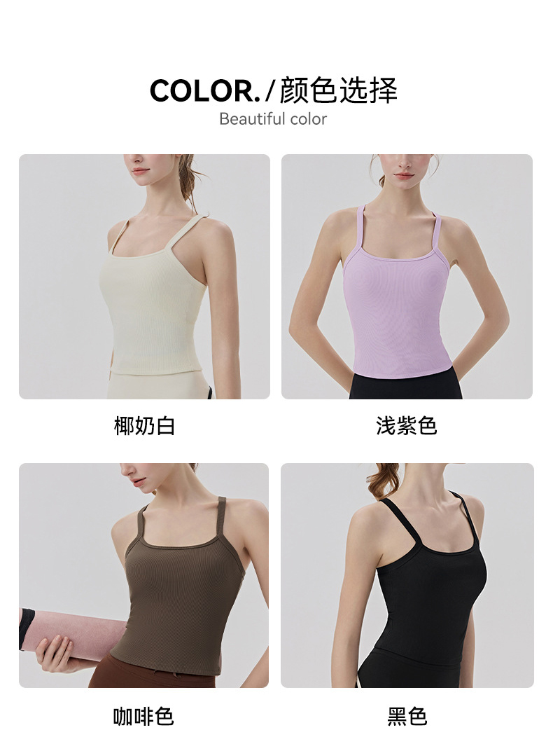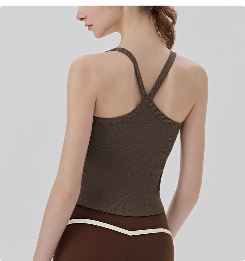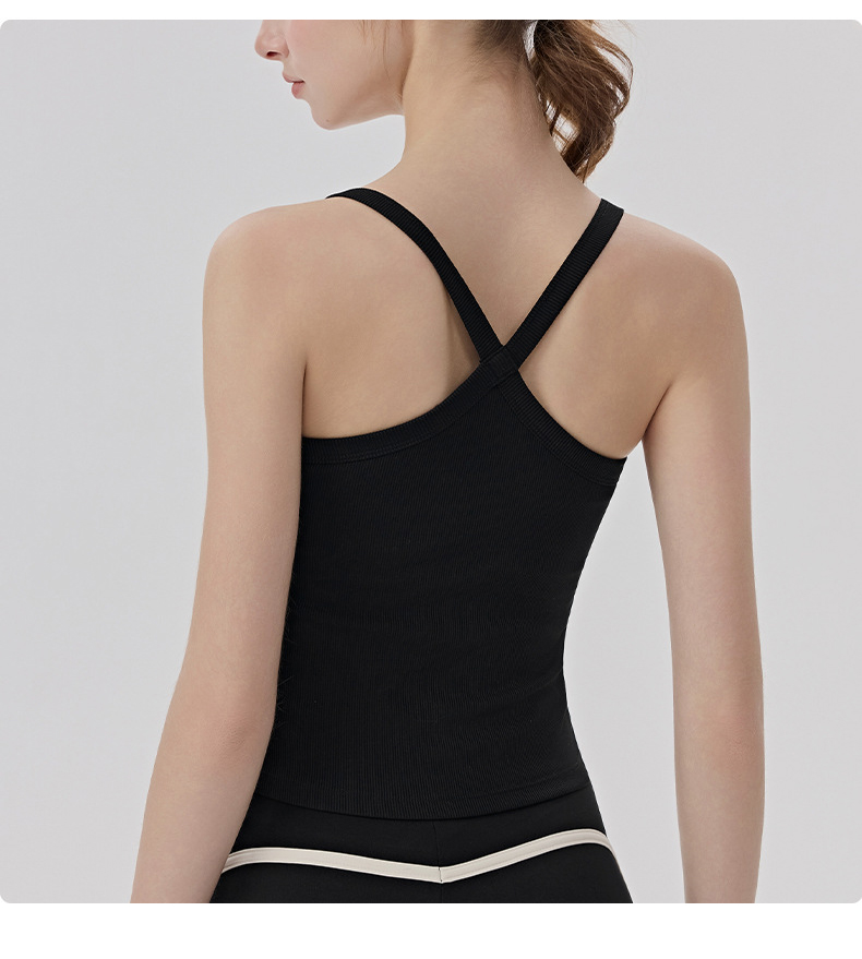 YOGACODE【火树银花系列】春夏罗纹瑜伽背心女带胸垫免穿内衣性感Y字美背背心DWB116170