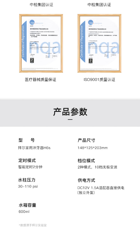 拜尔家用式冲牙器H6