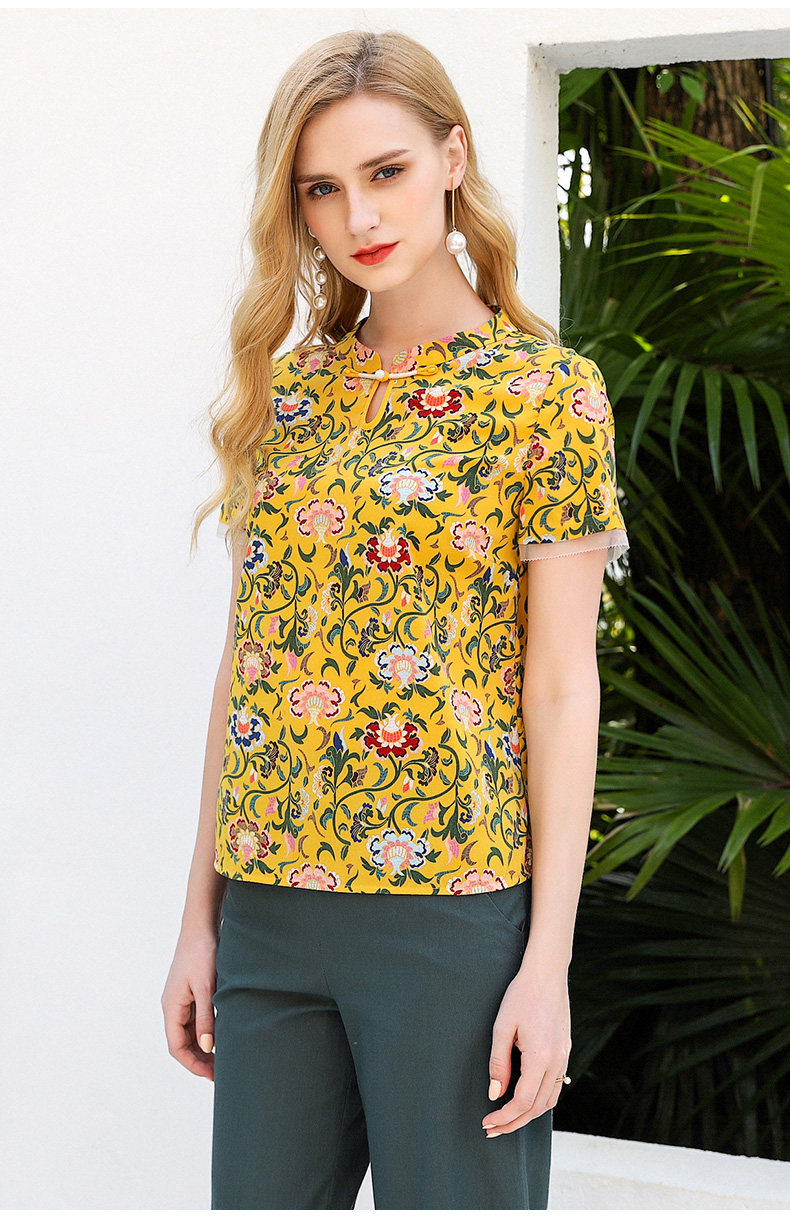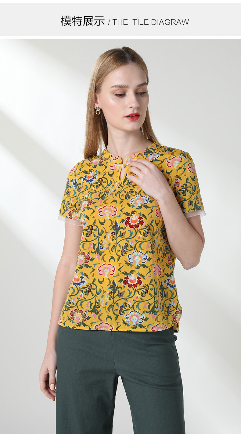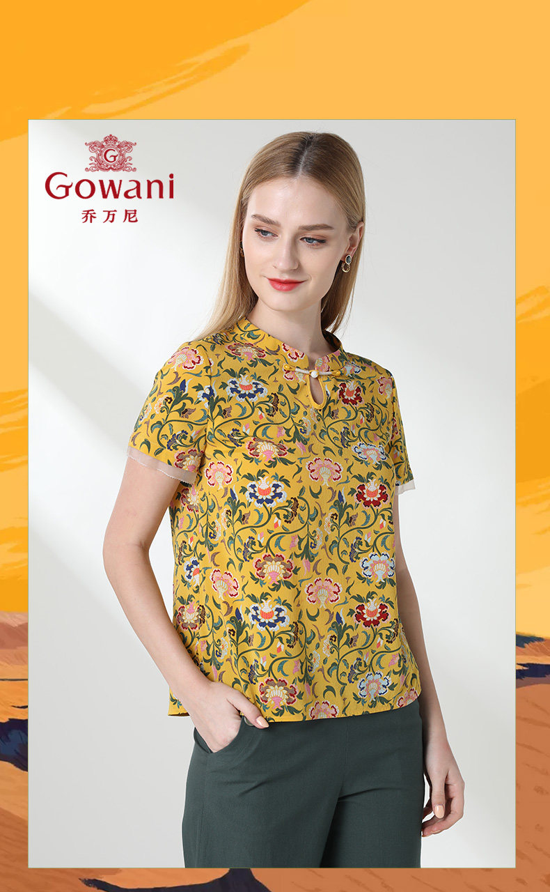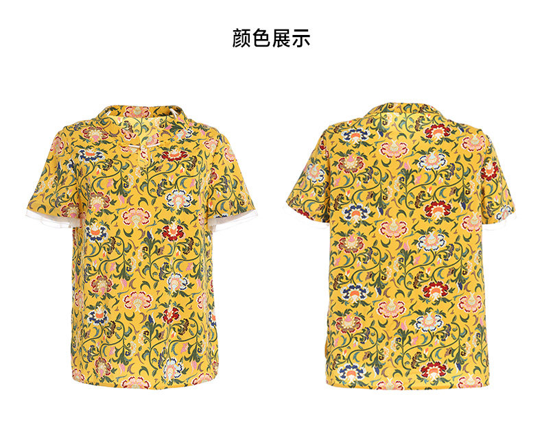 乔万尼夏季衬衫中国风复古印花宽松直筒真丝桑蚕丝上衣女EN2C567