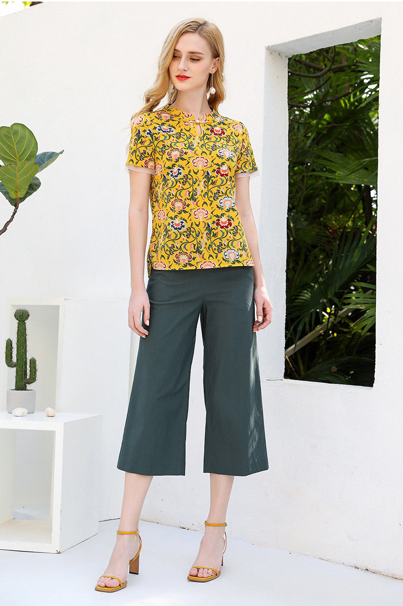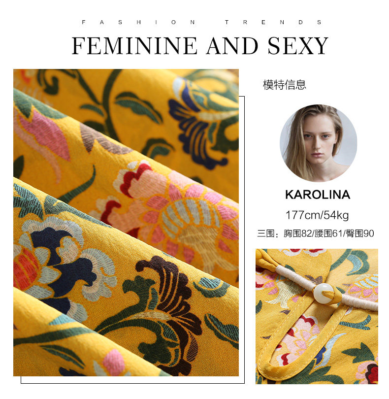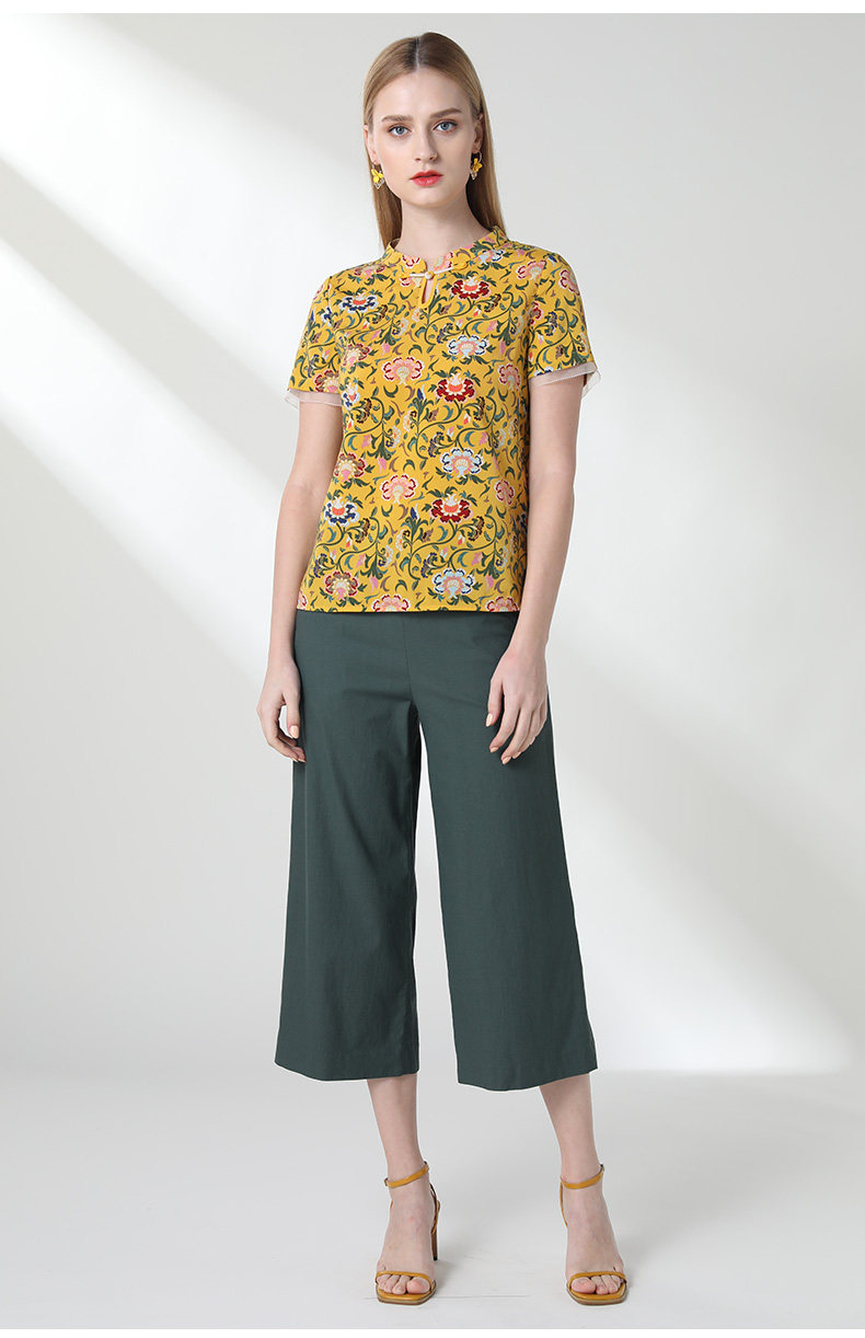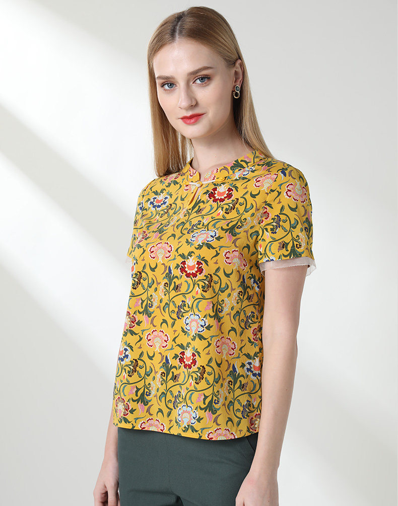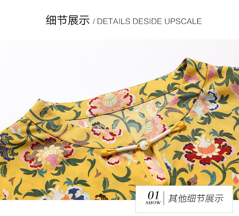 乔万尼夏季衬衫中国风复古印花宽松直筒真丝桑蚕丝上衣女EN2C567