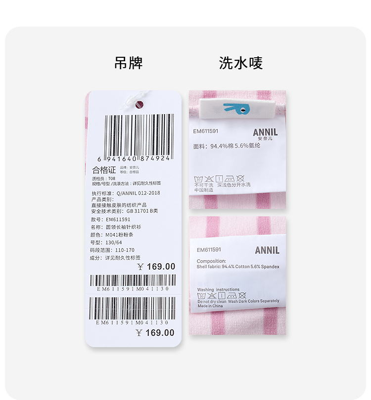 男女童圆领长袖针织衫春季新款安奈儿童装EM611591