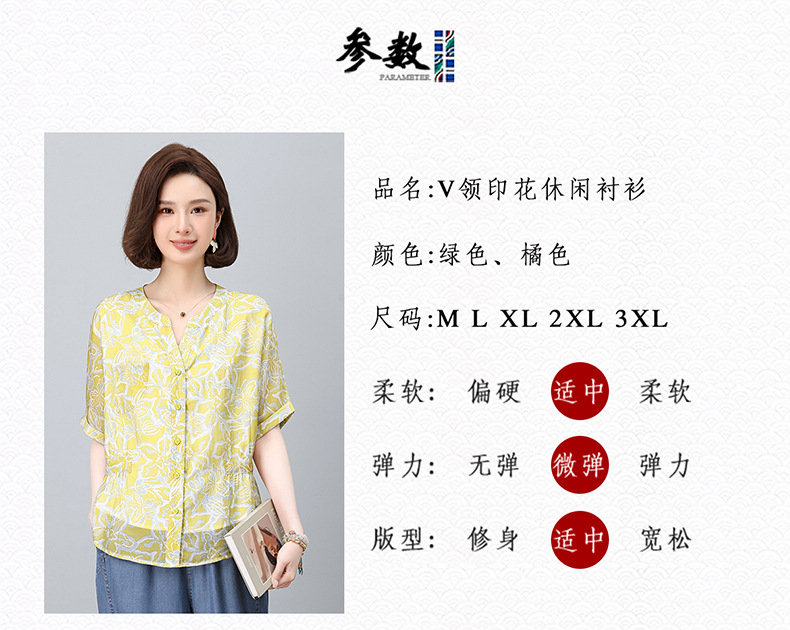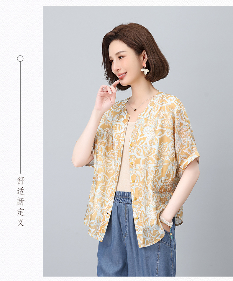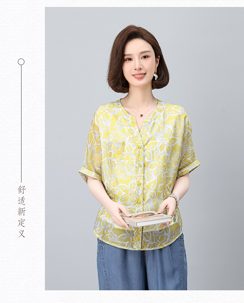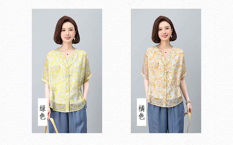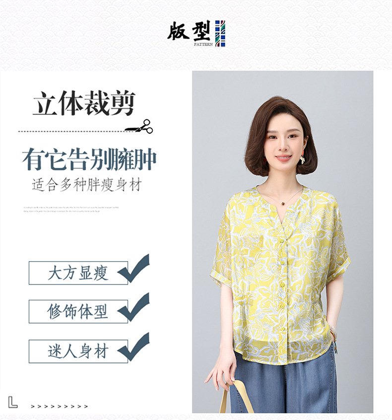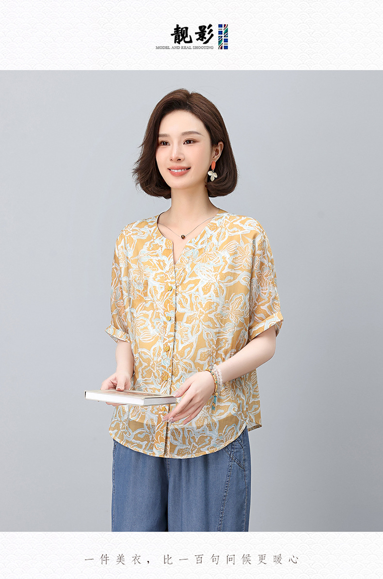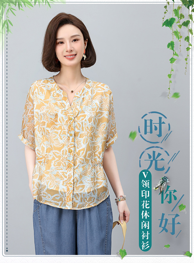 丁摩 时尚印花衬衫女夏季新款宽松洋气减龄薄款短袖上衣5ZF-2118
