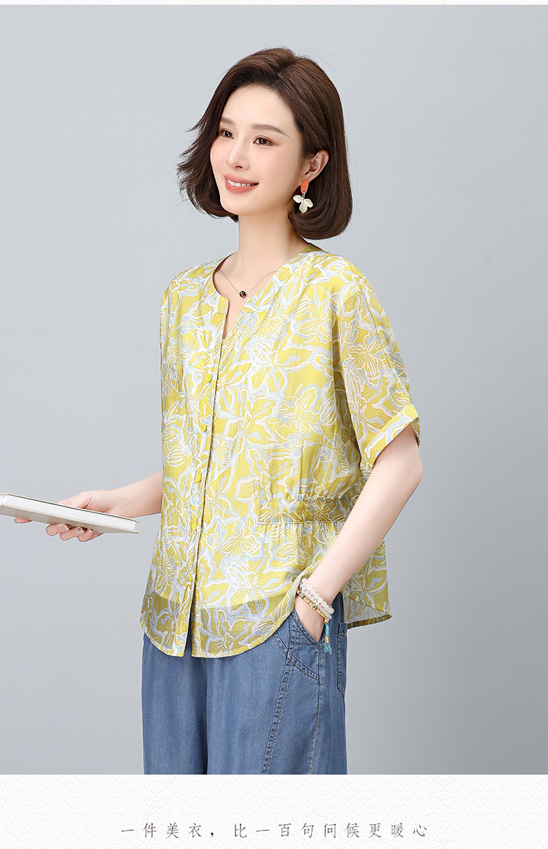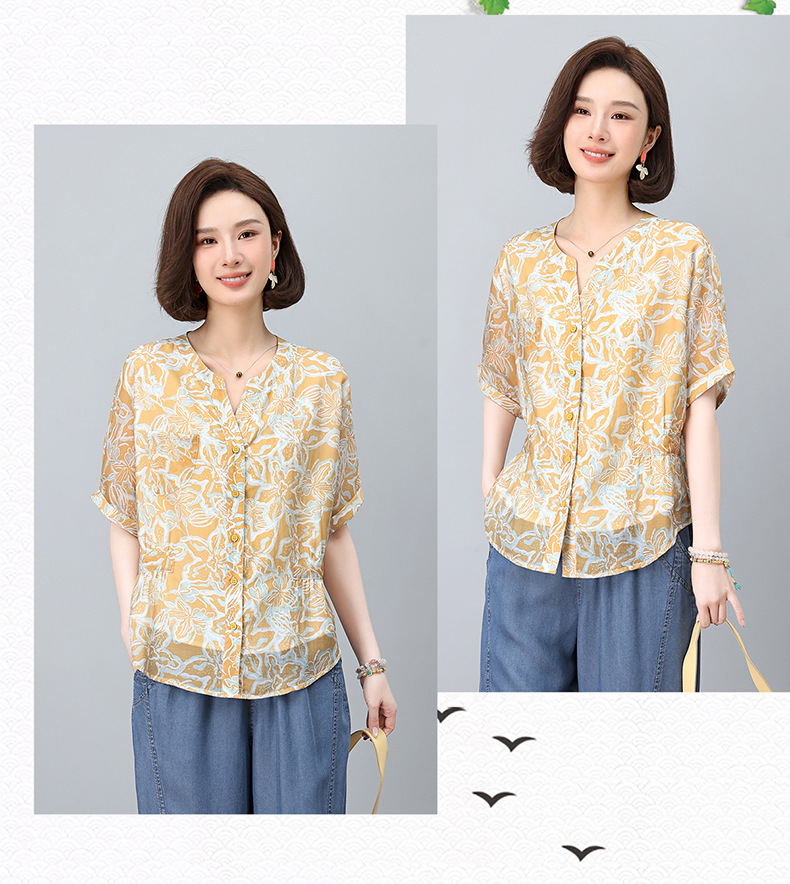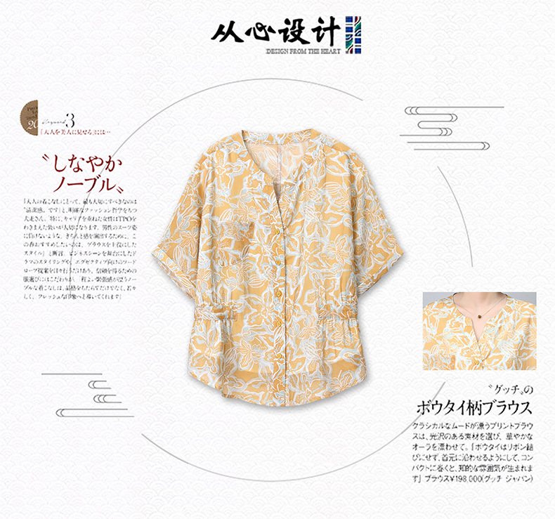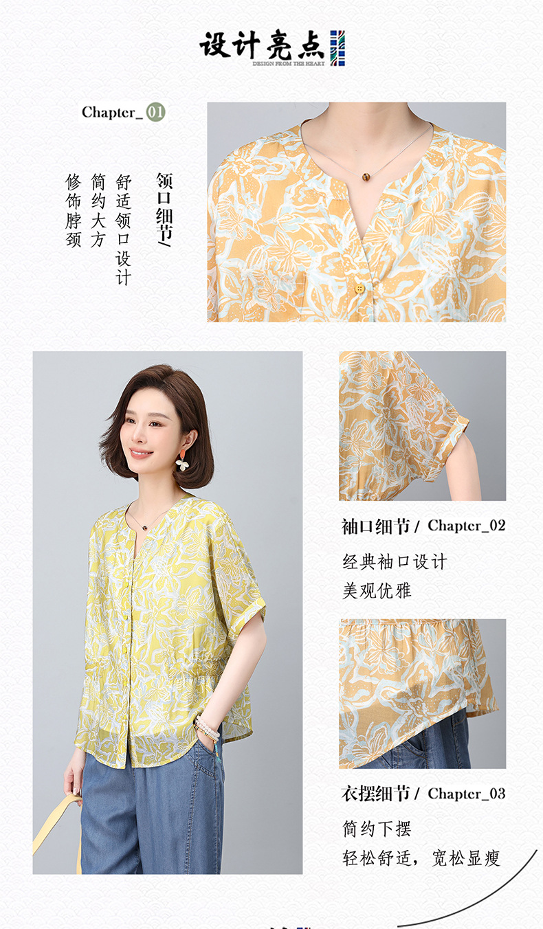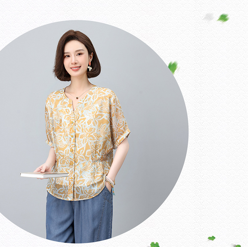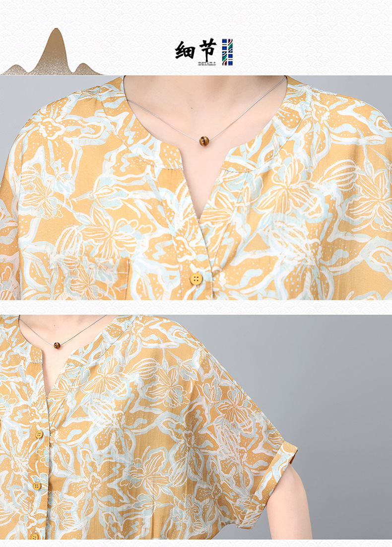 丁摩 时尚印花衬衫女夏季新款宽松洋气减龄薄款短袖上衣5ZF-2118