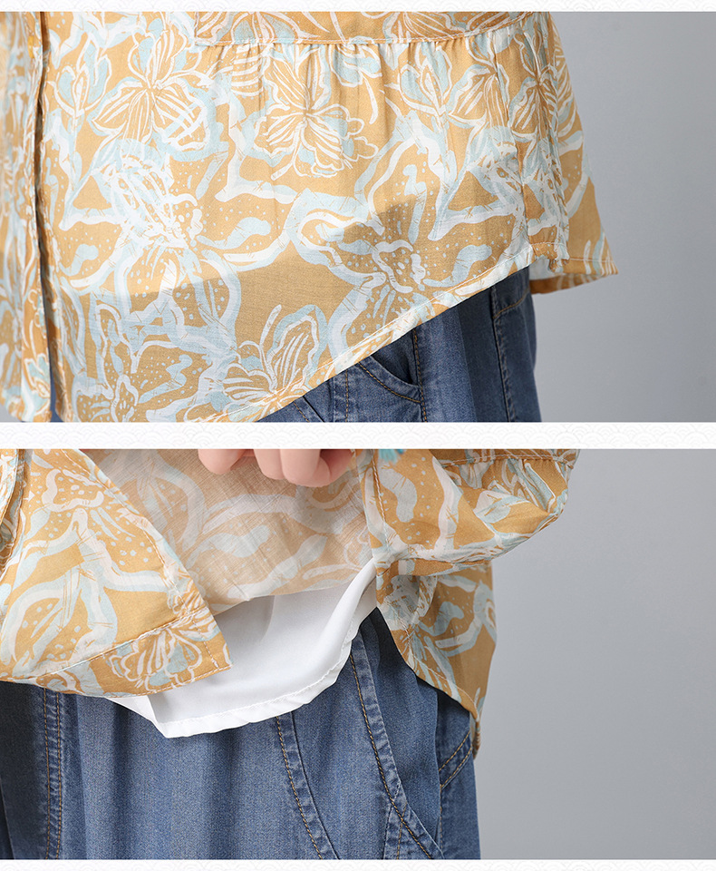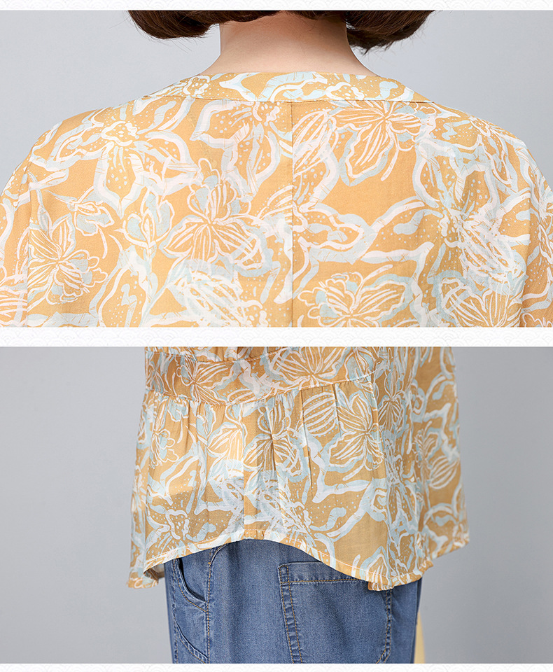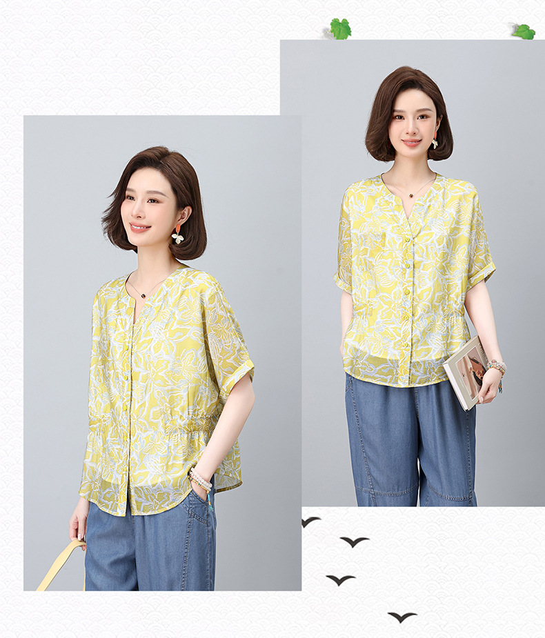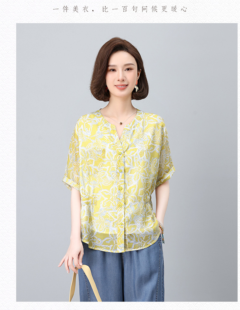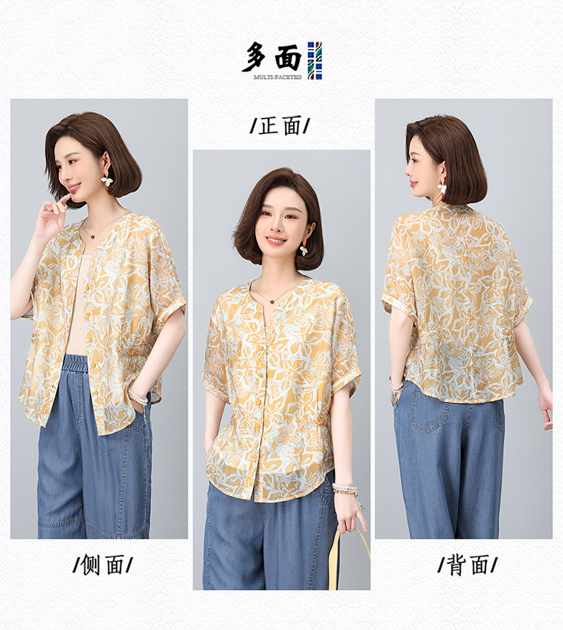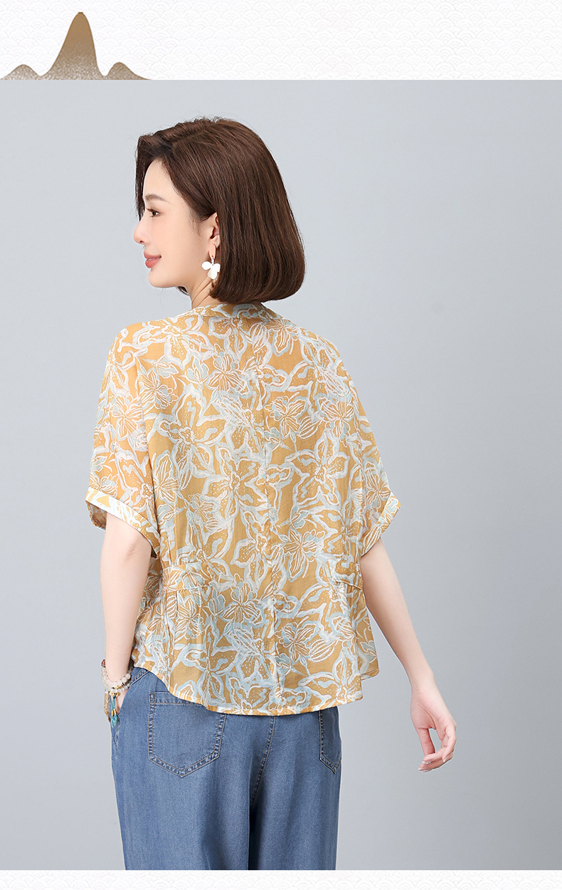 丁摩 时尚印花衬衫女夏季新款宽松洋气减龄薄款短袖上衣5ZF-2118
