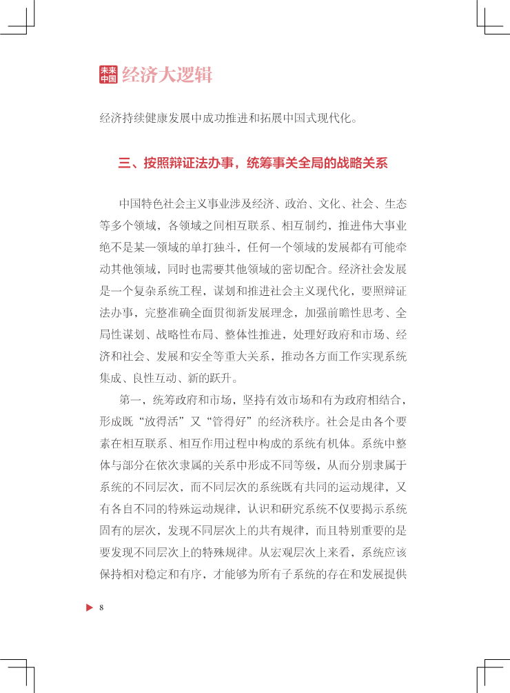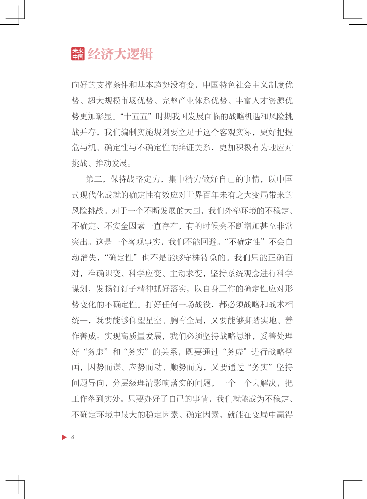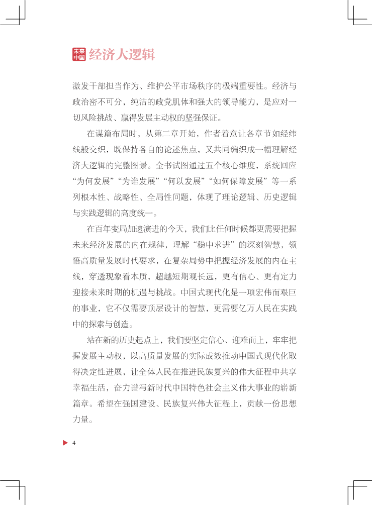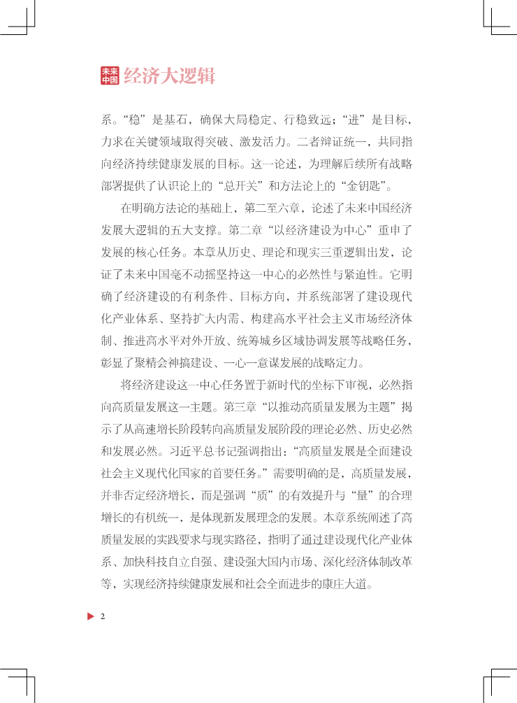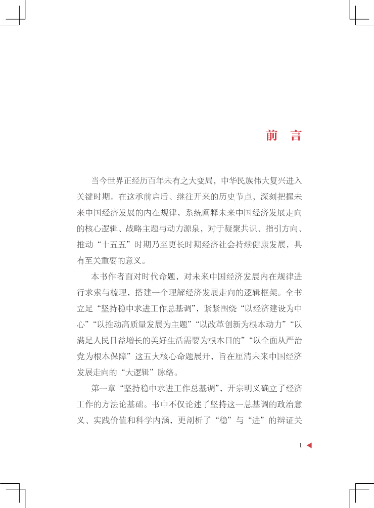 本书面对时代命题,对未来中国经济发展内在规律进行求索与梳理,搭建一个理解经济发展走向的逻辑框架。全书立足“坚持稳中求进工作总基调”,紧紧围绕“以经济建设为中心”“以推动高质量发展为主题”“以改革创新为根本动力”“以满足人民日益增长的美好生活需要为根本目的”“以全面从严治党为根本保障”这五大核心命题展开,旨在厘清未来中国经济发展走向的“大逻辑”脉络。