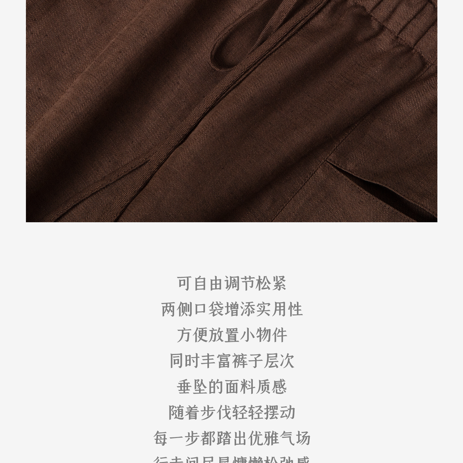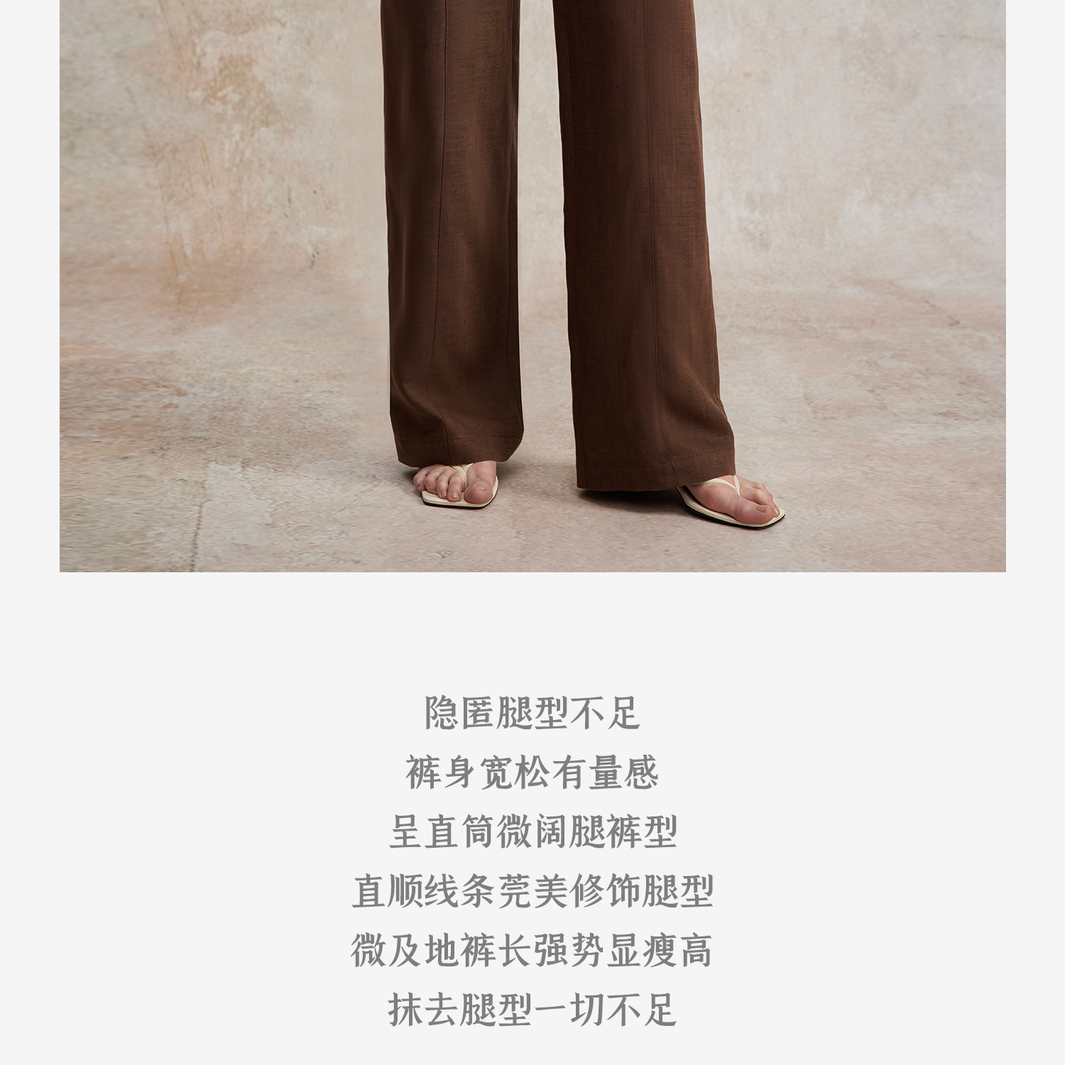 C+IMPRESS/西嘉天丝亚麻 松弛老钱风裤子女夏季抽绳高个子阔腿裤