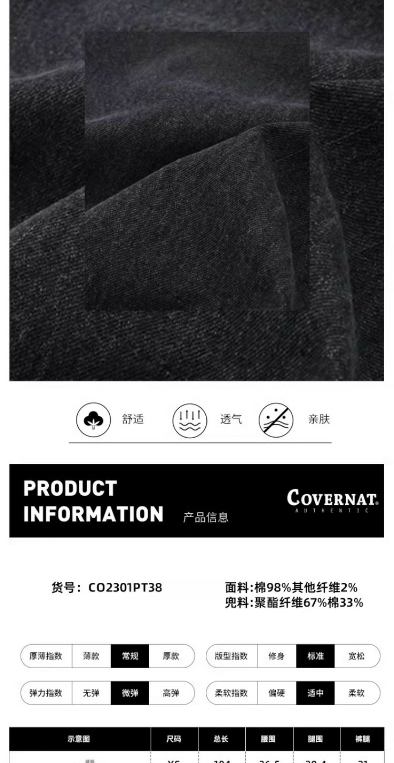 Covernat夏季新品长裤牛仔裤直筒裤男性裤子长裤CO2301PT38
