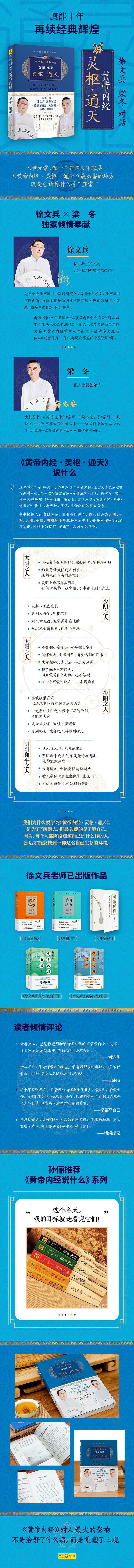 继畅销十年的徐文兵、梁冬对话《黄帝内经·上古天真论》《四气调神》《天年》《异法方宜》《金匮真言》之后,徐文兵、梁冬再创经典辉煌,联袂推出《徐文兵、梁冬对话<黄帝内经·灵枢·通天>》,讲述人与天地、疾病、生命之间的重大关系。