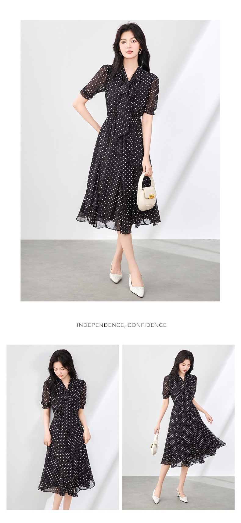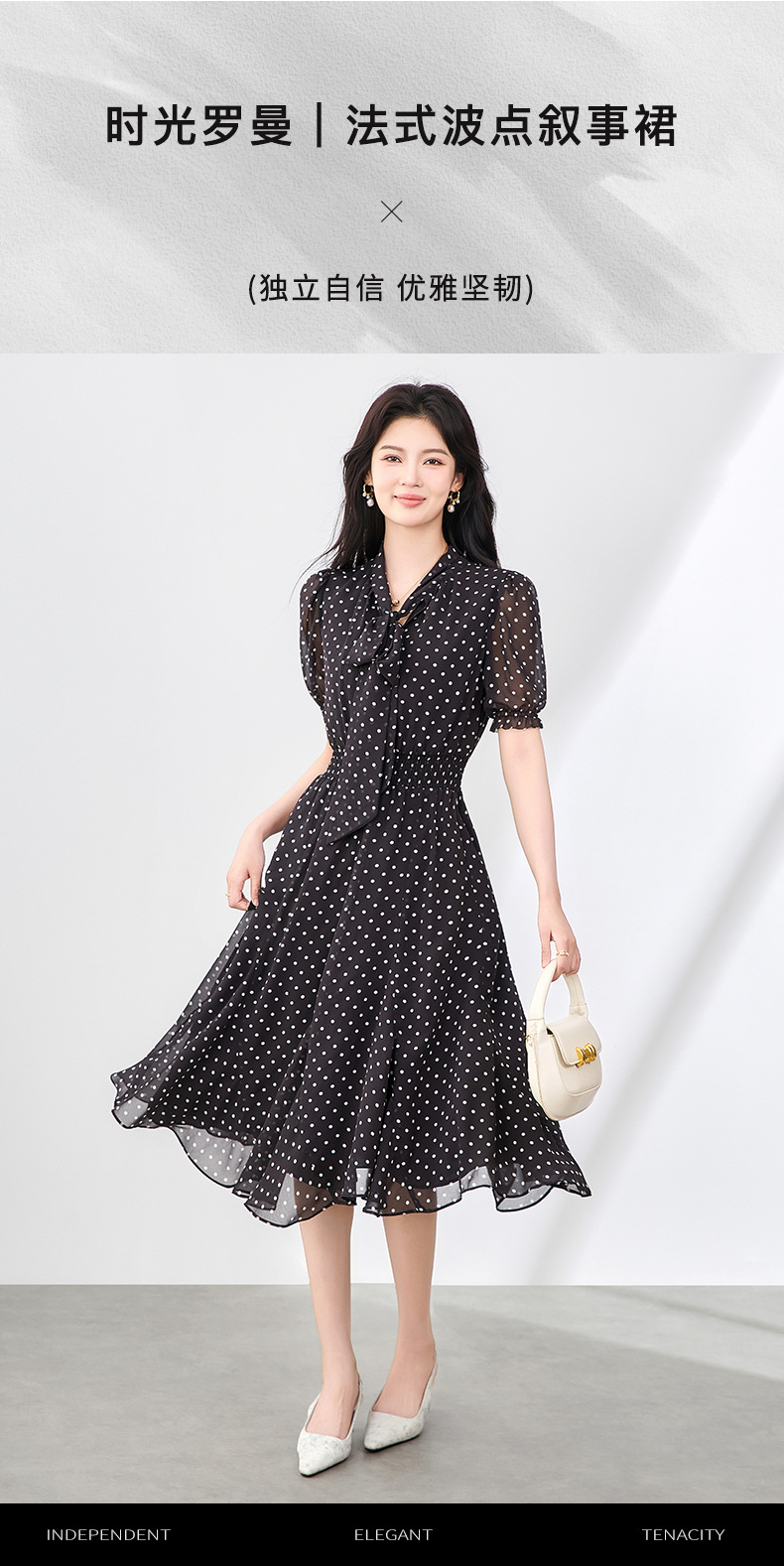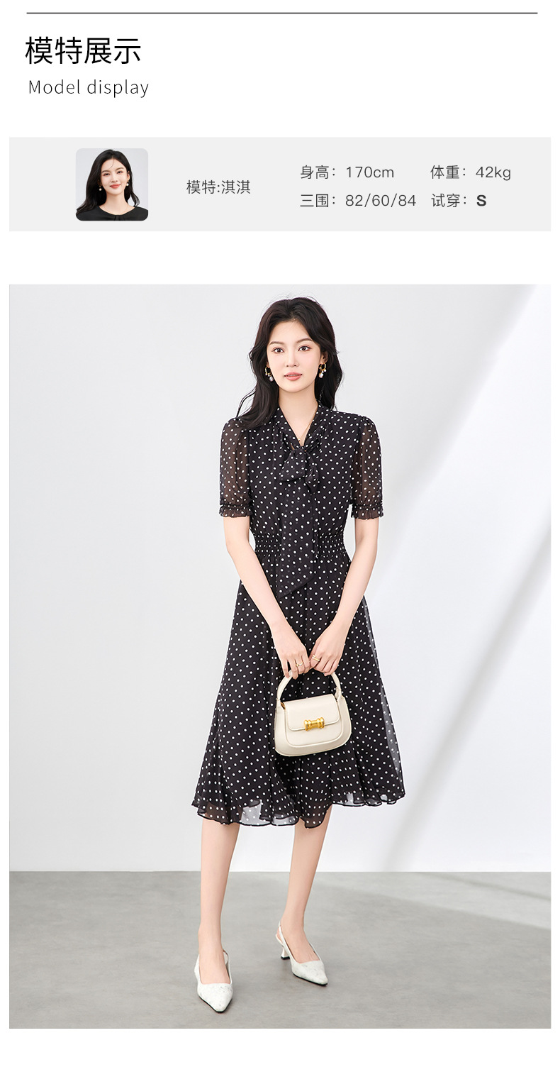 「高货wl」全新升级【铂金会员330/天猫439/差价109】(50241)洛诗琳法式复古波点气质连衣裙2025夏季新款收腰系带裙女
