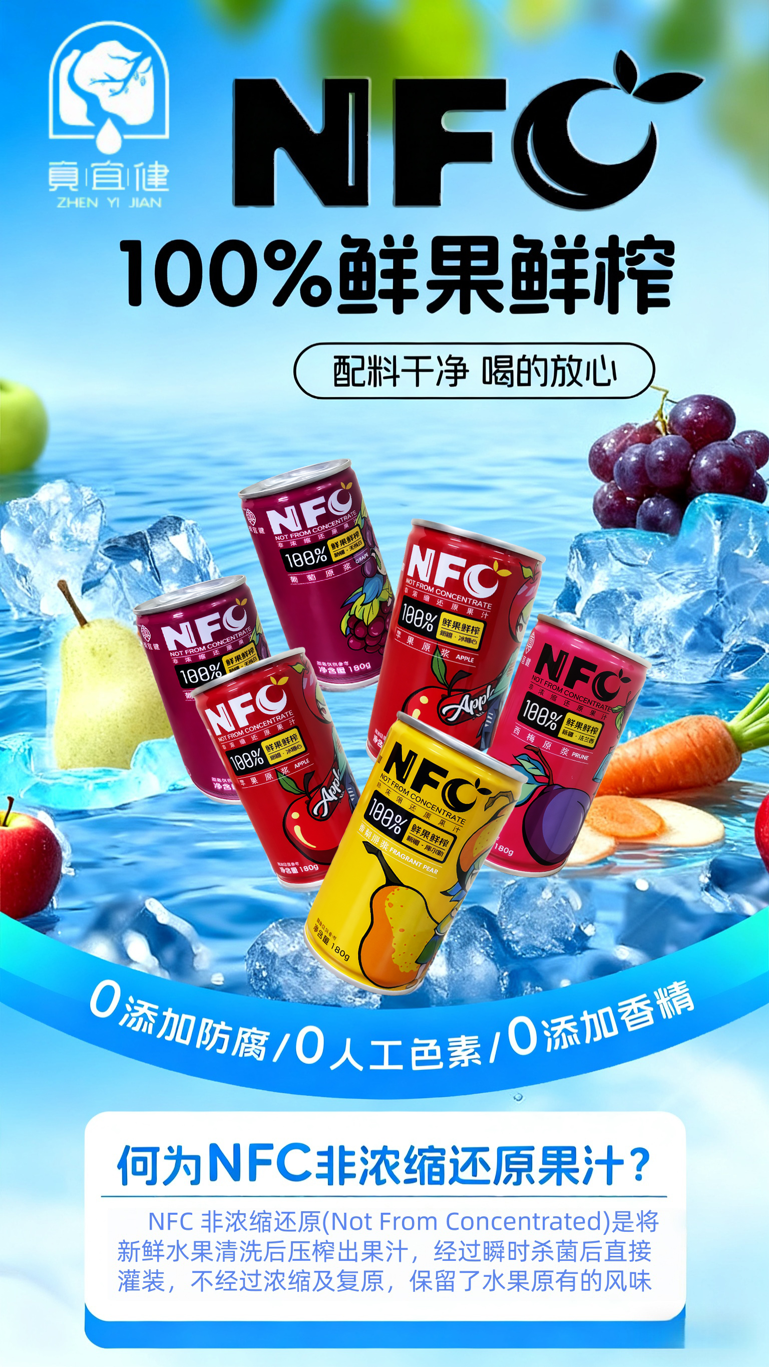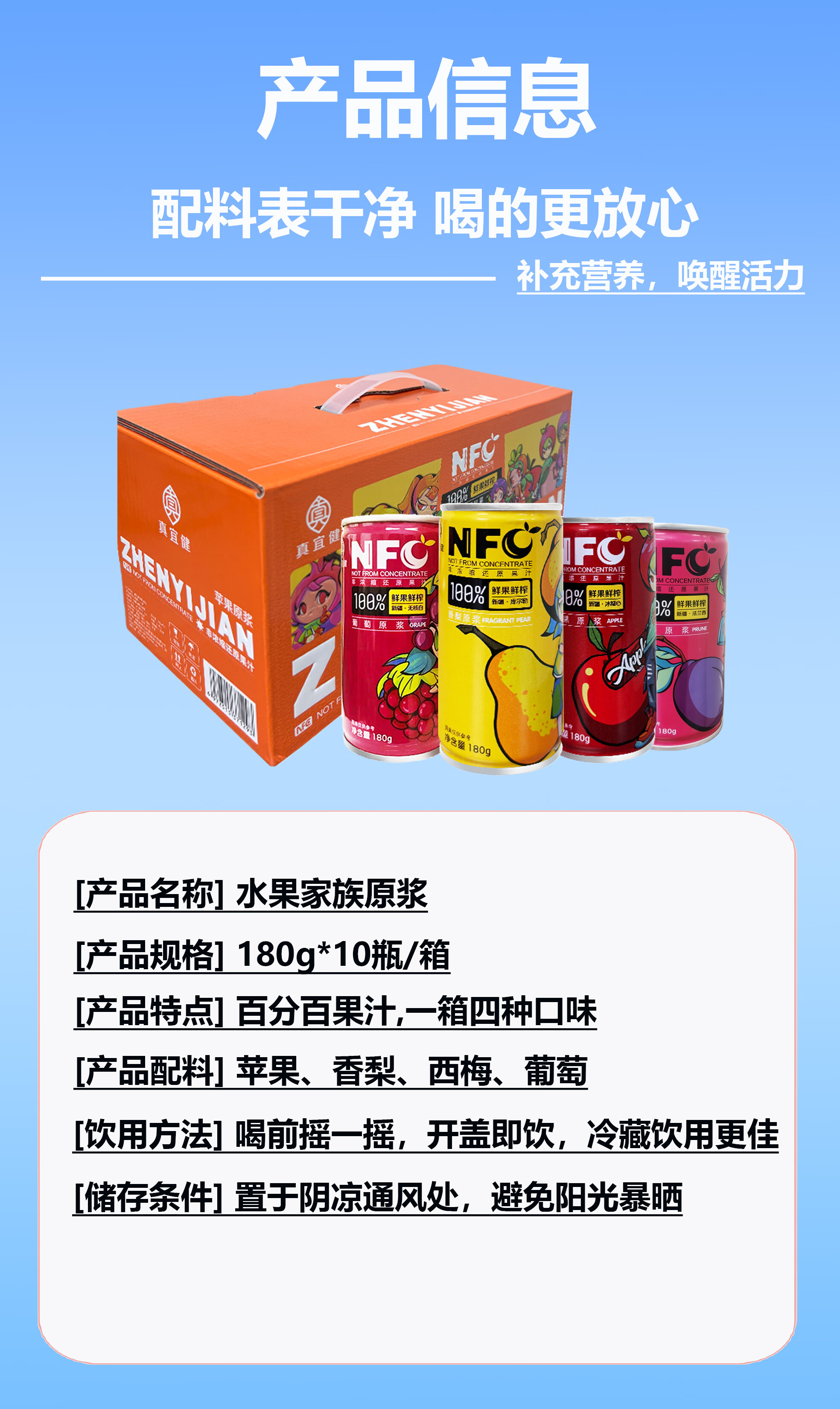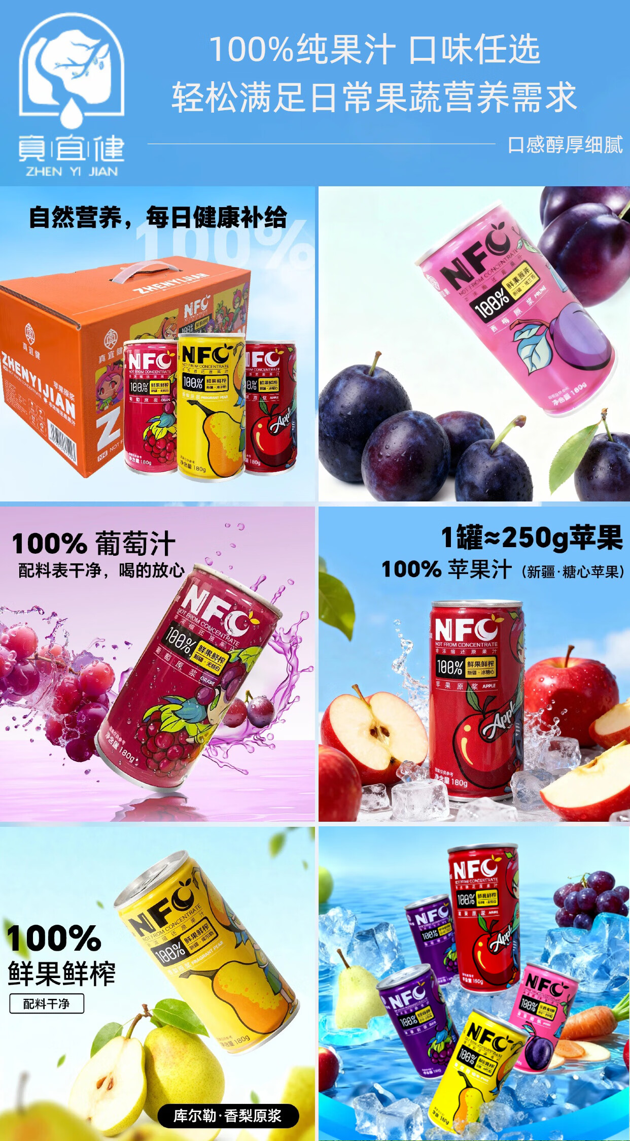 真宜健·NFC鲜果鲜榨果汁180g*10罐混合口味 非浓缩还原果汁