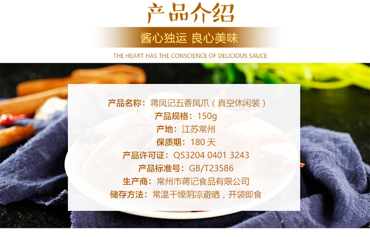 【常州馆】蒋凤记 五香凤爪 卤味熟食卤鸡爪鸡脚零食特色小吃肉干肉脯 休闲真空装 150g