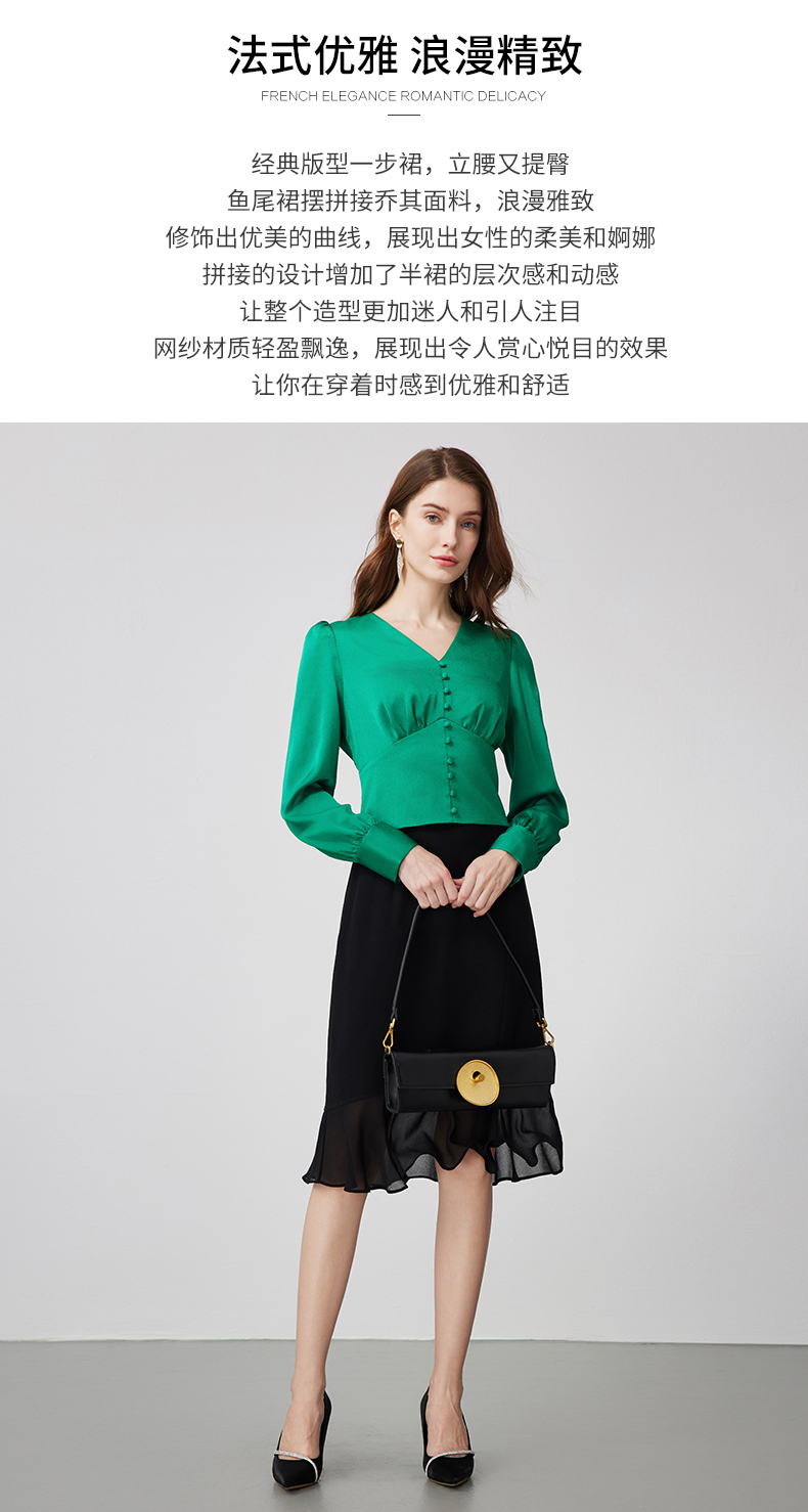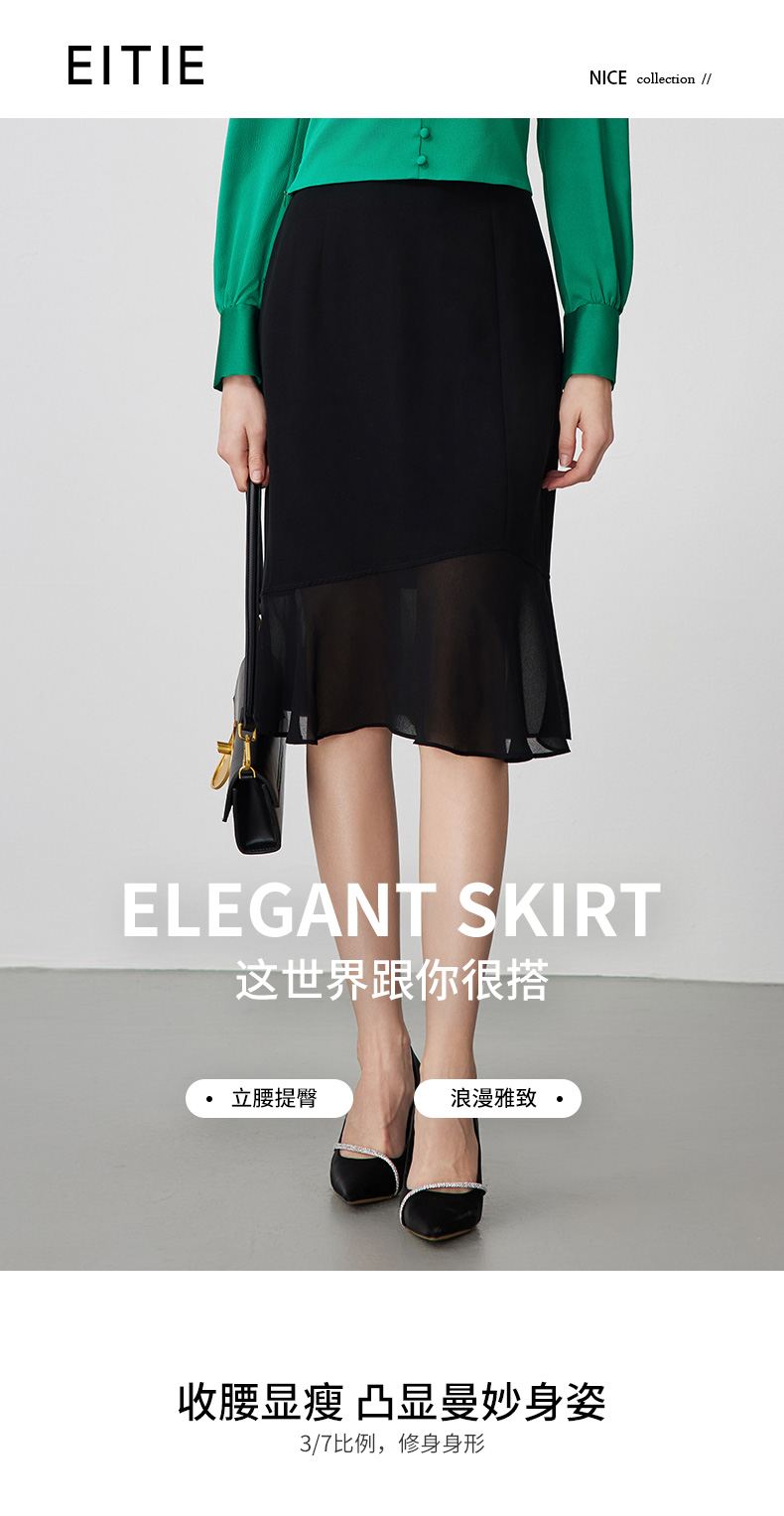 EITIE爱特爱夏季新款优雅温柔高腰显瘦半身裙7306011