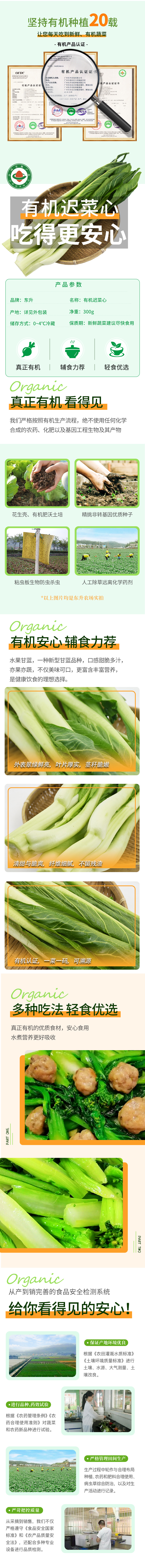 东升农场 有机迟菜心 菜苔 爽脆清甜 有机蔬菜 广东配送 300g