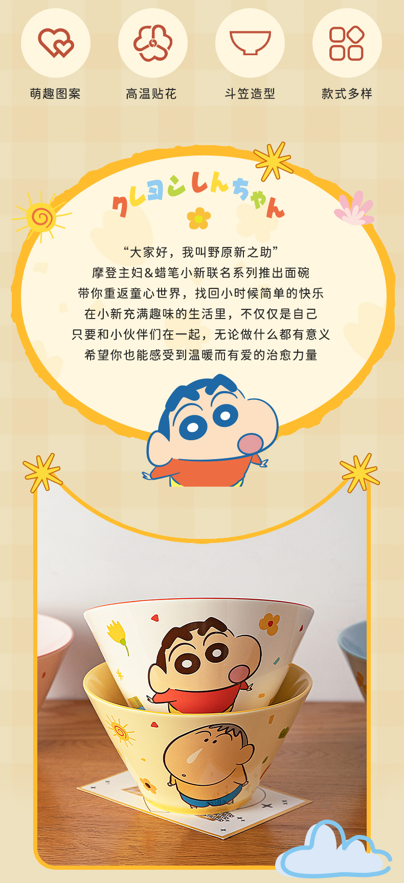 摩登主妇&蜡笔小新泡面碗家用2025新款餐具斗笠碗拉面碗汤碗
