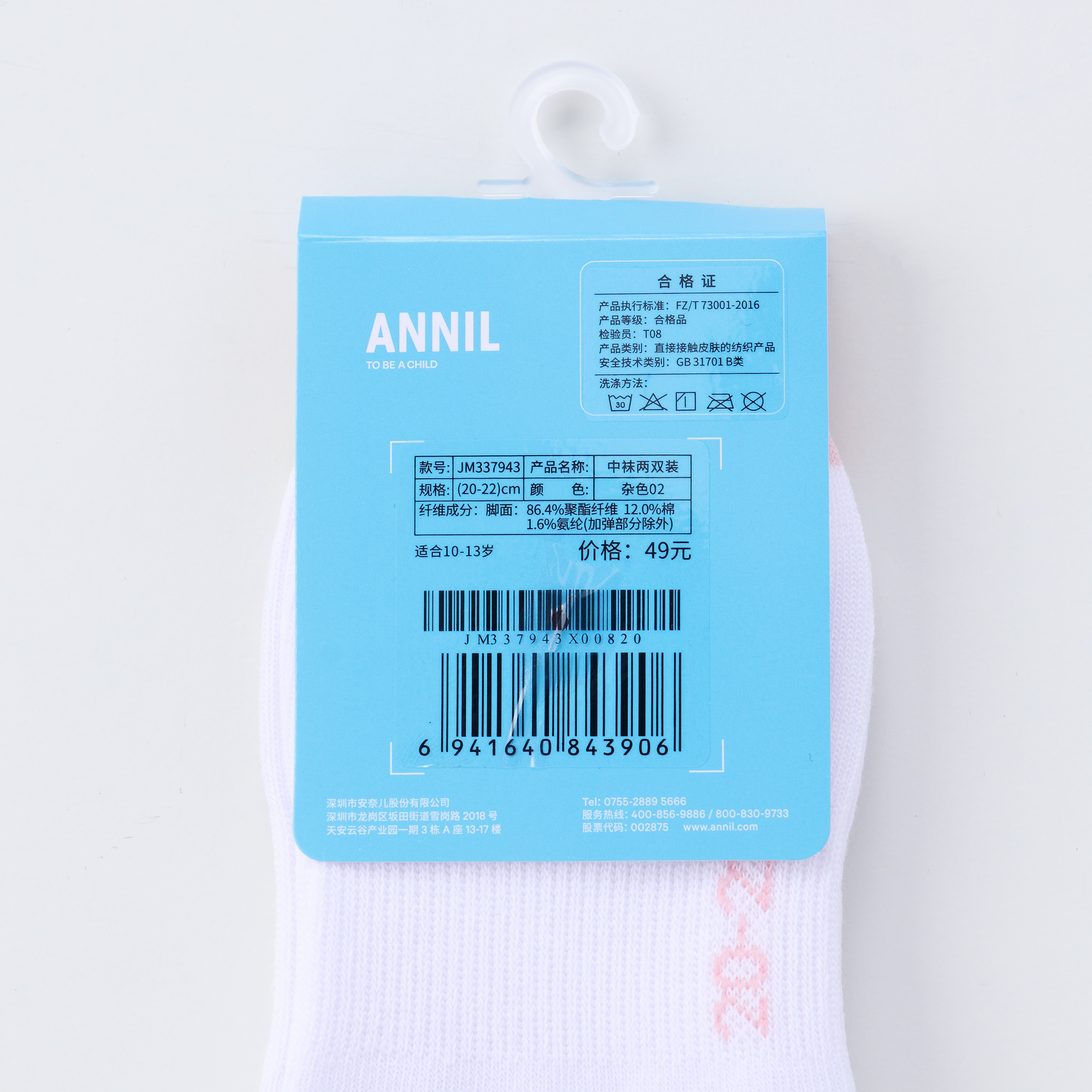 【实体店同款】男童女童中袜两双装2023年秋季新款安奈儿童装JM337943