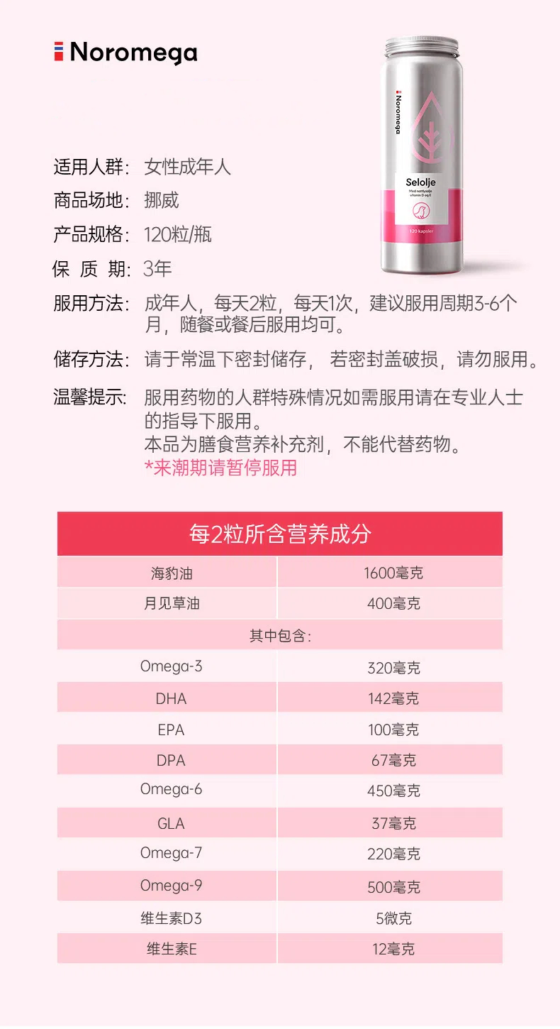 【跨境】挪威Noromega 诺美嘉月见草海豹油 120粒/瓶