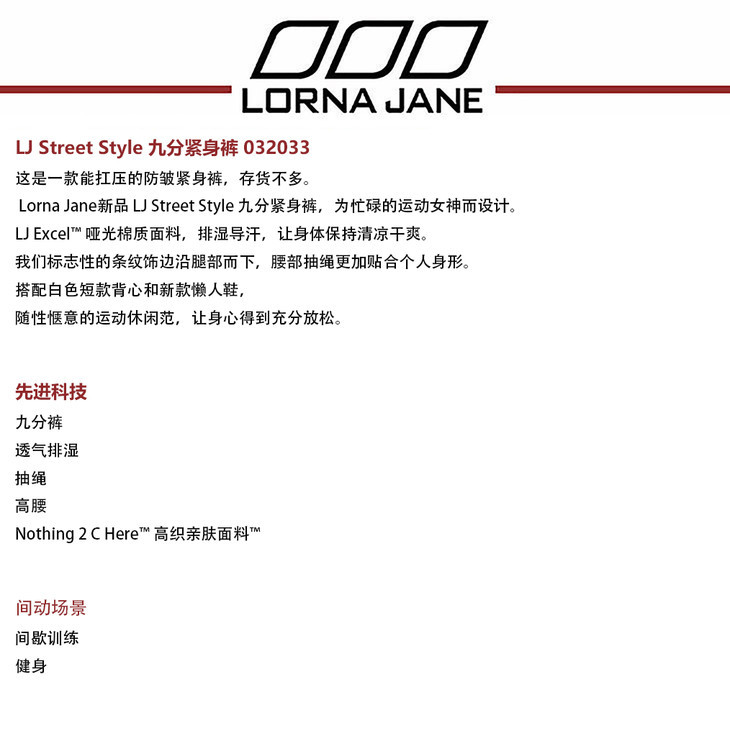 【清仓秒】澳洲 Lorna Jane LJ Street Style 九分紧身裤 032033(清仓产品,收货7天内支持调货、不退款)