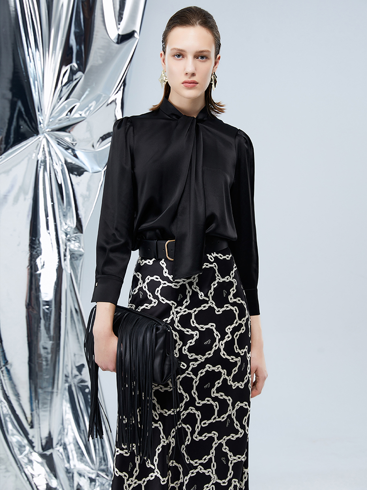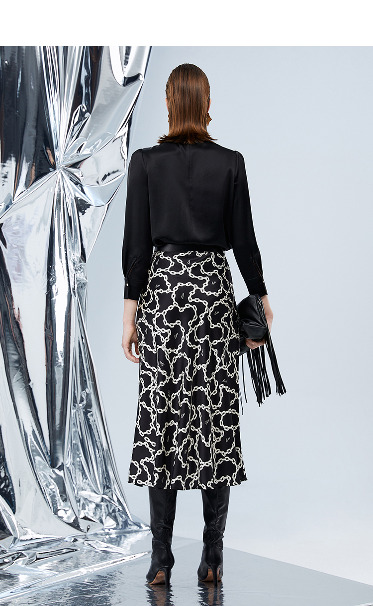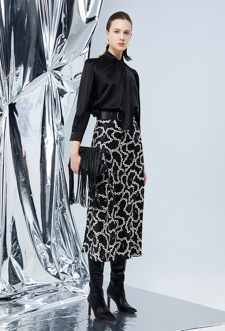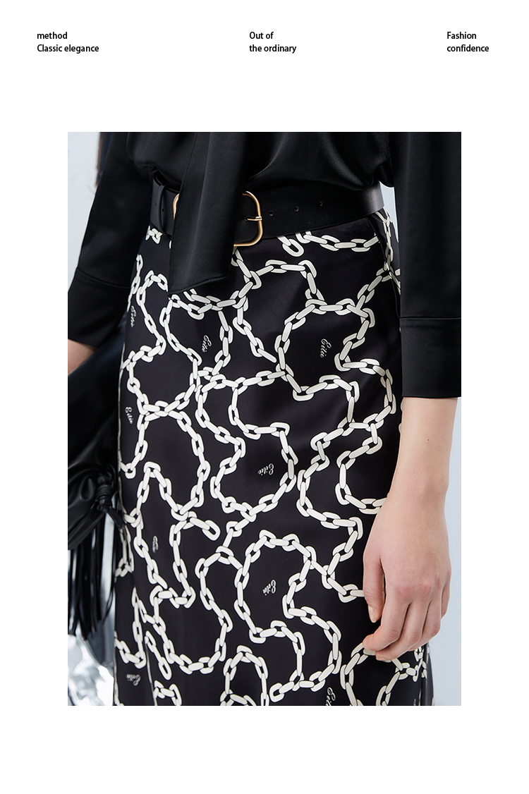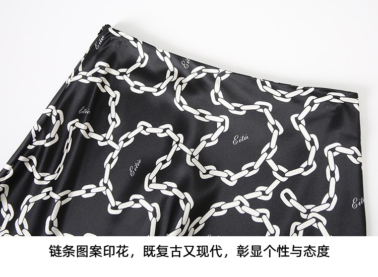 EITIE爱特爱秋季新款显瘦百搭印花高腰a字通勤半身裙7506213