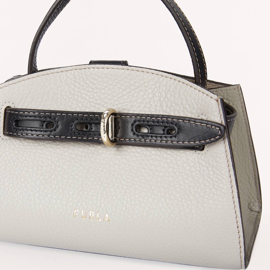 Furla Margherita迷你手袋,柔软罗马小牛皮拼接粒纹小牛皮精制。配有金属转锁锁扣,皮革系带饰有椭圆形孔眼细节,融入Furla Net系列设计风格,优雅而实用。搭配可拆卸可调节肩带,可作为单肩包或斜挎包使用,携带舒适便捷。