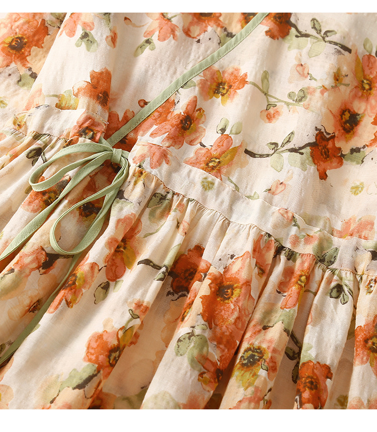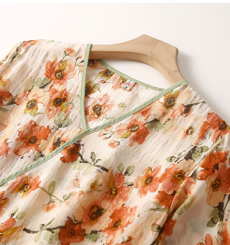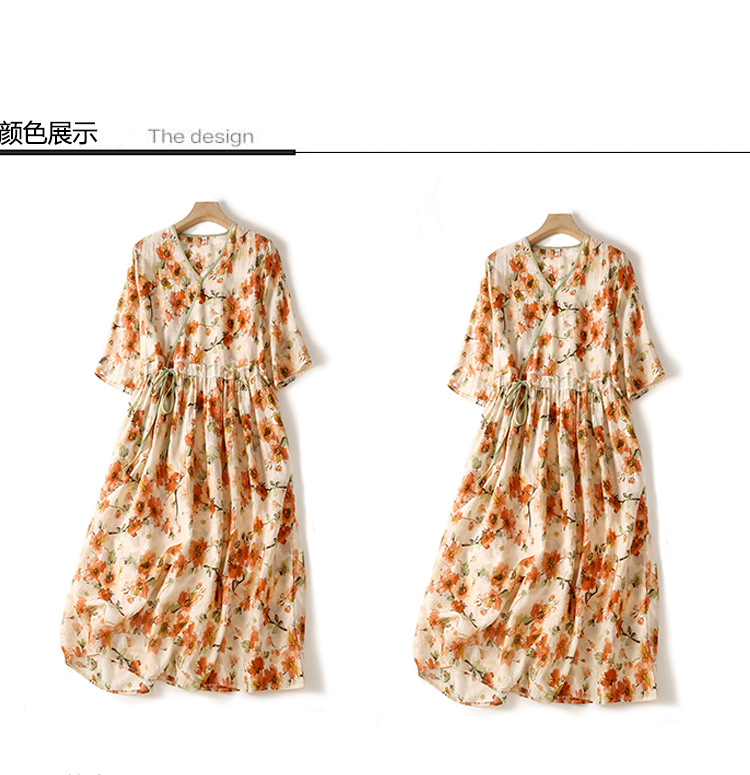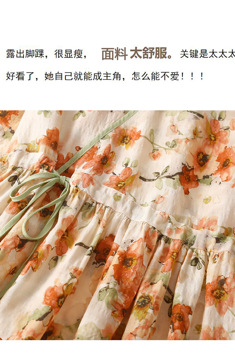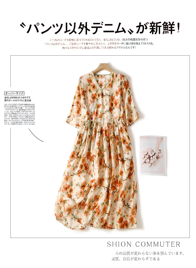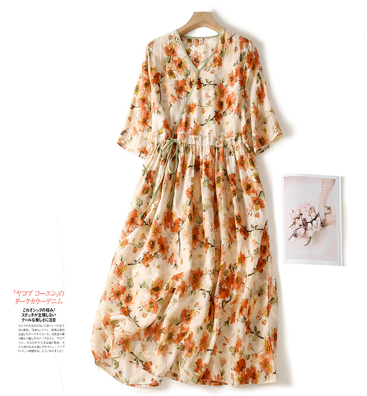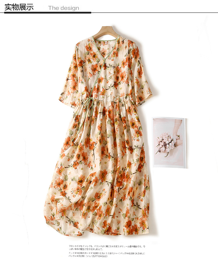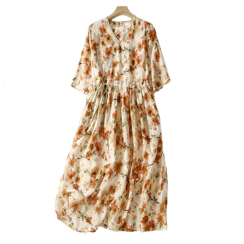 GYH 931复古棉麻连衣裙薄款大码=气质收腰碎花裙=