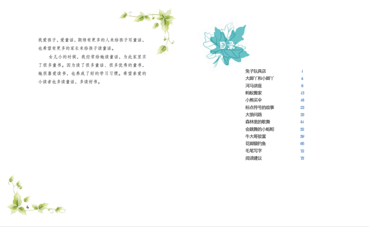 《大脚丫和小脚丫》是结合儿童心理发展以及语文教育,使用儿童常用字,采用中文的基本句型,注重句子的长短适中、情节架构和叙事方式,专门创作的童话桥梁书。本书包括《兔子玩具店》《蚂蚁搬家》《小熊买伞》等篇目,叙述了发生在动物主人公身上的有趣故事,引导小读者热爱阅读、享受阅读的快乐。