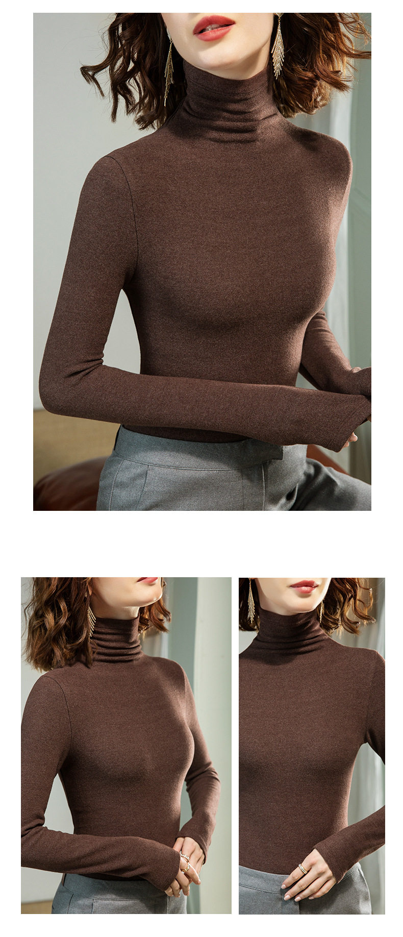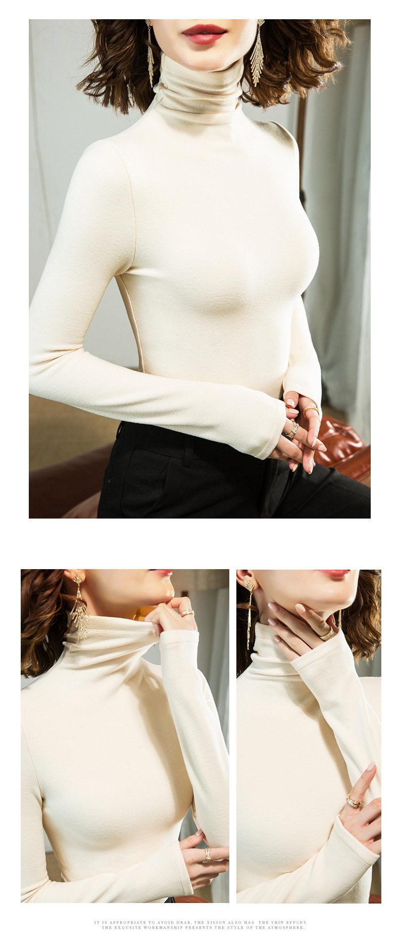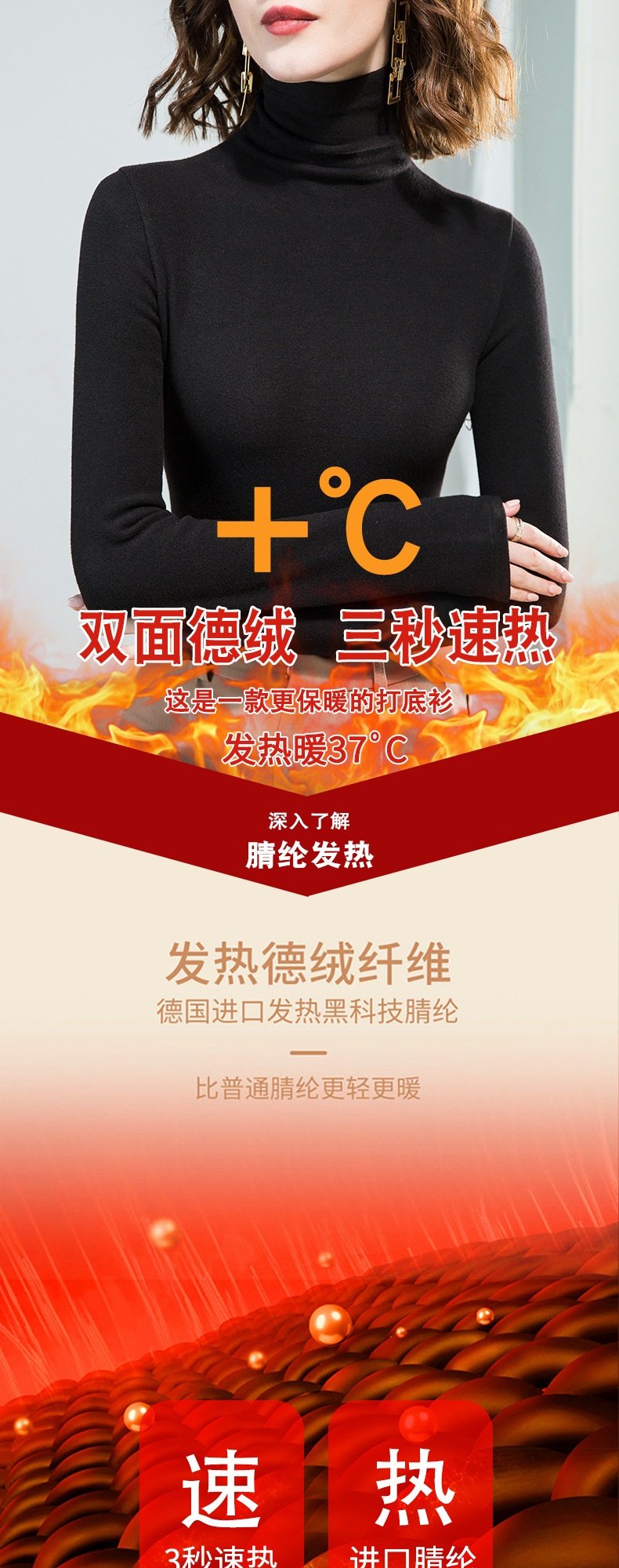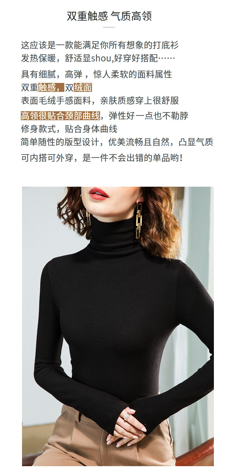 「自j」全新升级【铂金会员128/天猫169/差价41】(11712)洛诗琳高领打底衫2025秋冬气质修身双面德绒加绒保暖发热上衣