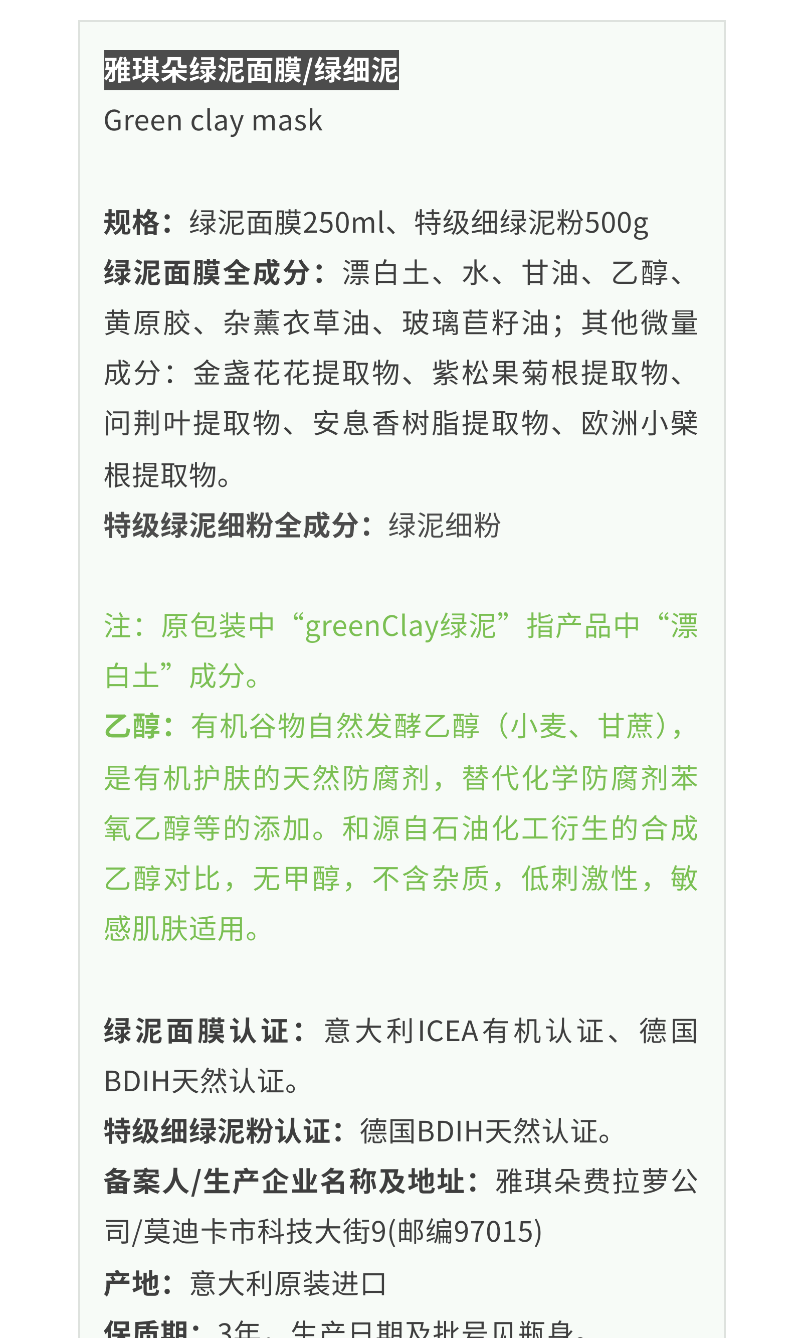 雅琪朵绿泥面膜/绿细泥(简装&礼盒 )| 公平贸易*Green clay mask Items