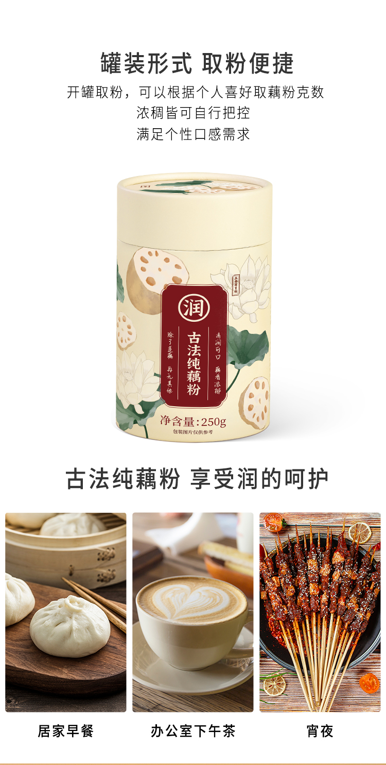 正安 古法藕粉 坚持古法非遗20斤藕≈1斤粉 甘润爽滑脾胃拒绝秋冬季干燥 冲调羹品早餐代餐老人易食家庭食品 手作宝应藕粉 250克/罐