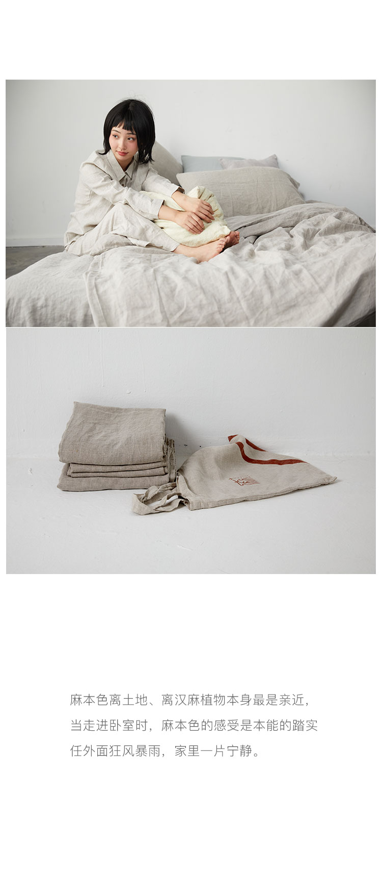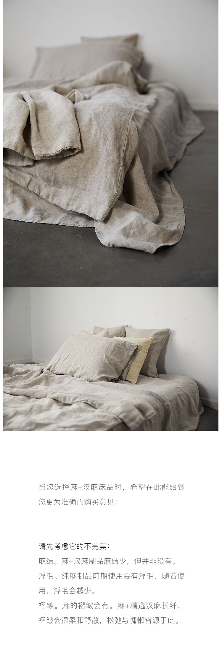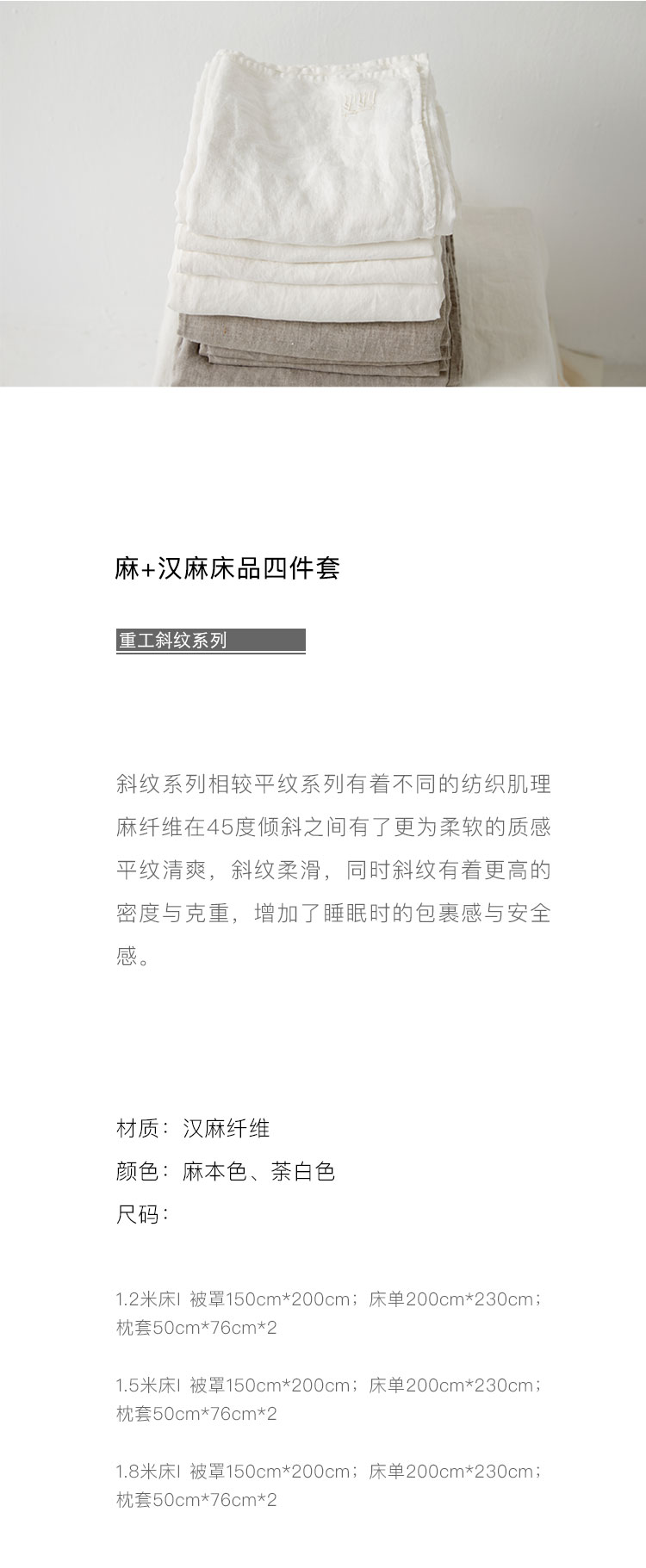重工斜纹汉麻纤维床品四件套 | 荼白色/麻本色 1.2米/1.5米/1.8米 枕套床单被罩 透气抑菌 麻+