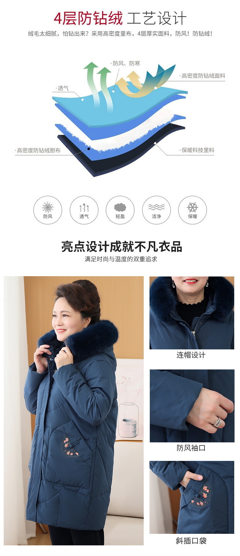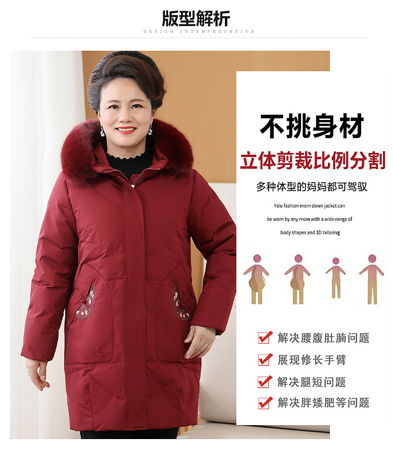 TH-2201 羽绒服女中长款中老年人秋冬装外套中年加肥加大码加厚棉袄