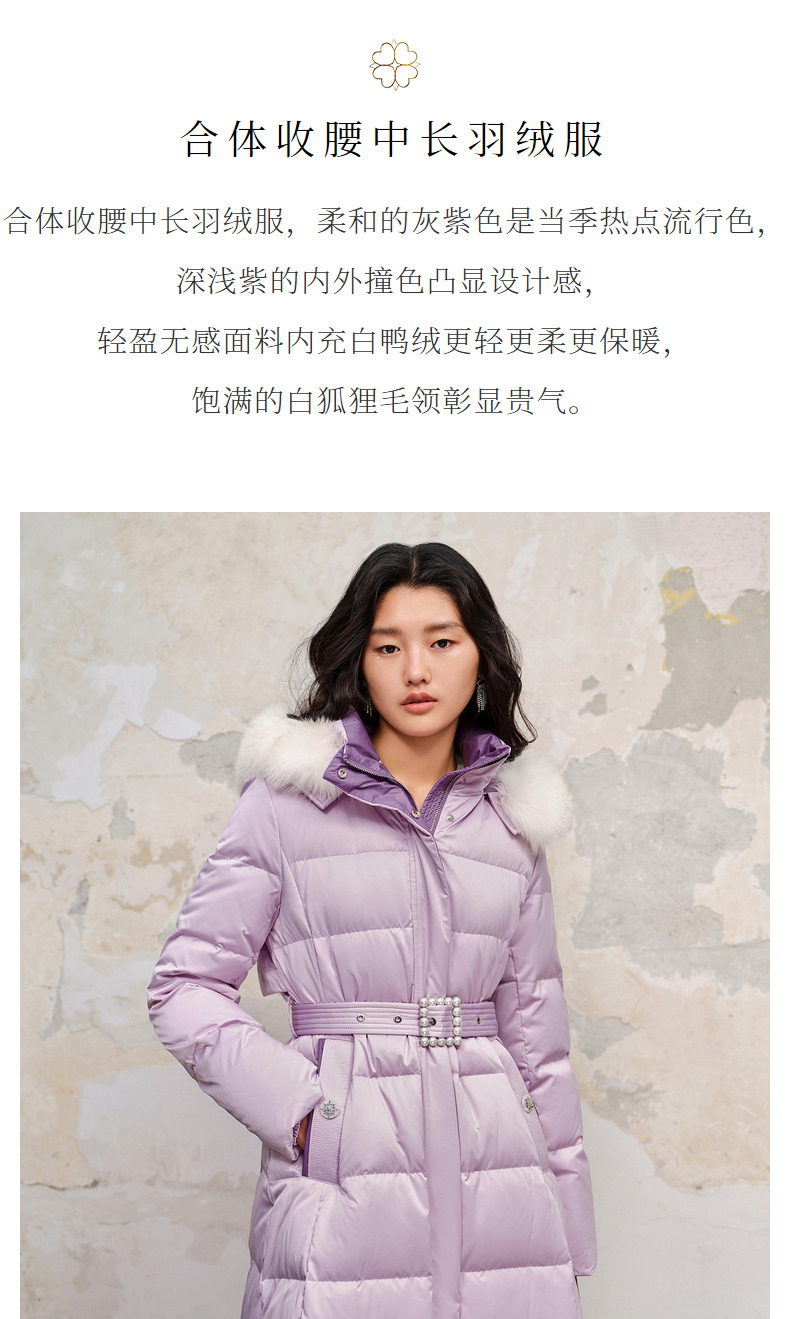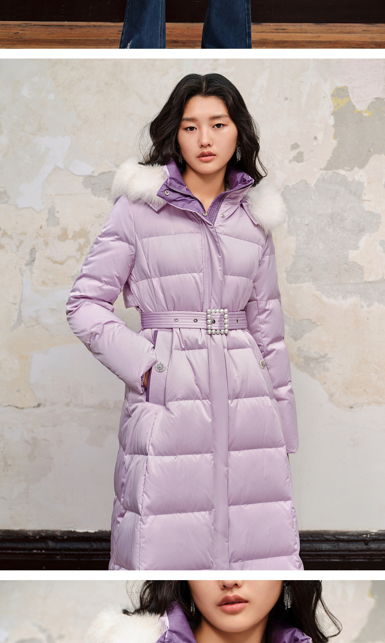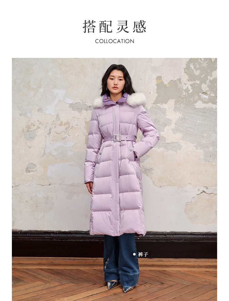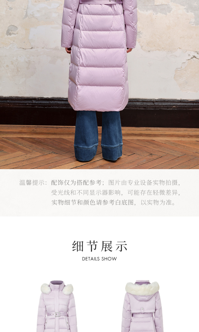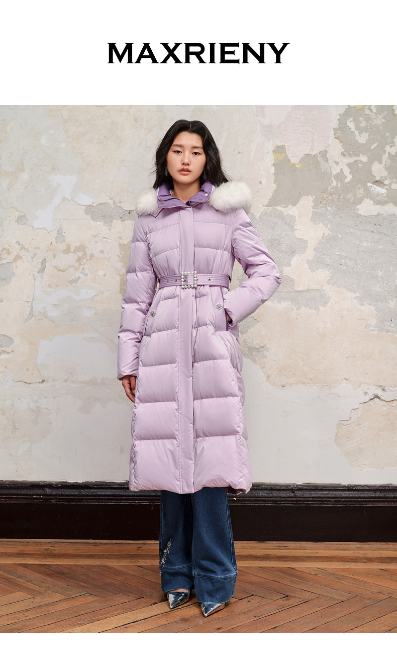 MAXRIENY羽绒服狐狸毛领长款修身收腰加厚冬季外套(货号:MC88DC506)