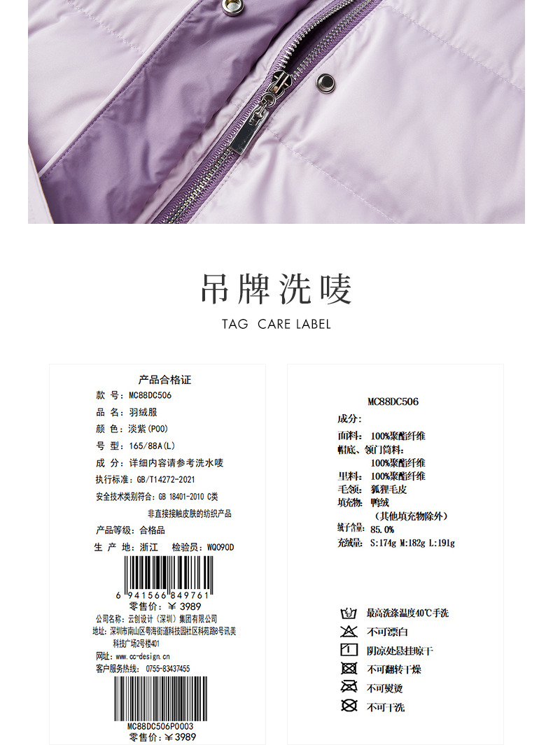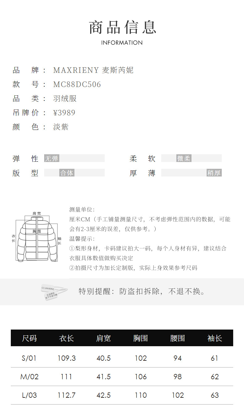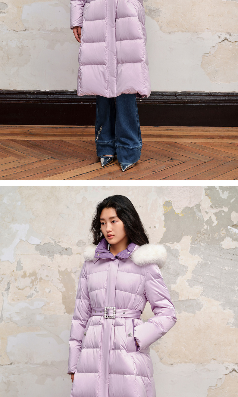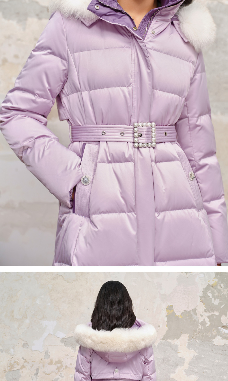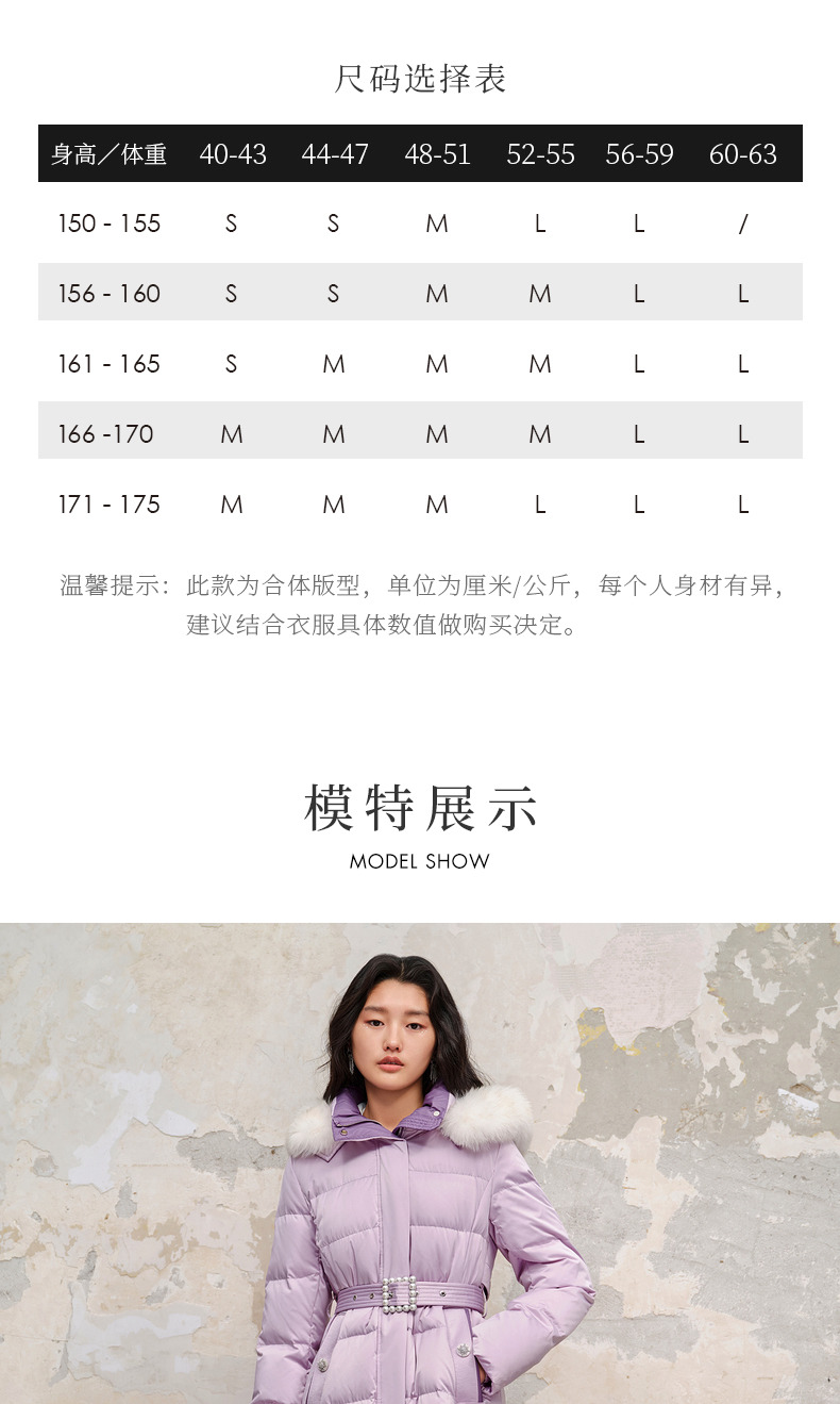 MAXRIENY羽绒服狐狸毛领长款修身收腰加厚冬季外套(货号:MC88DC506)