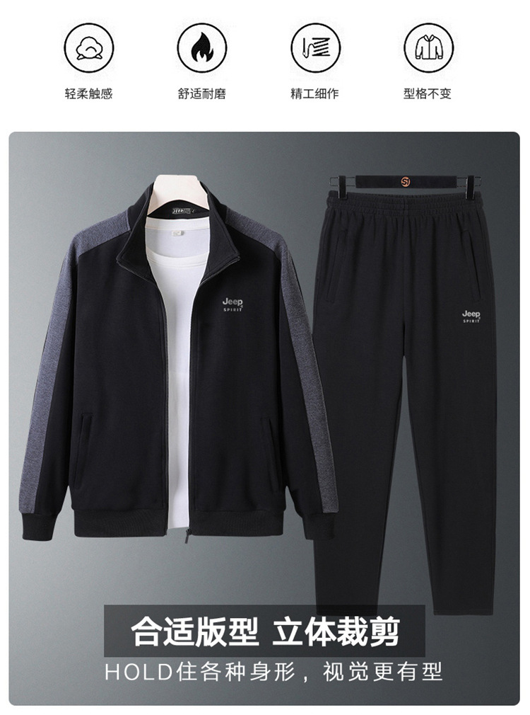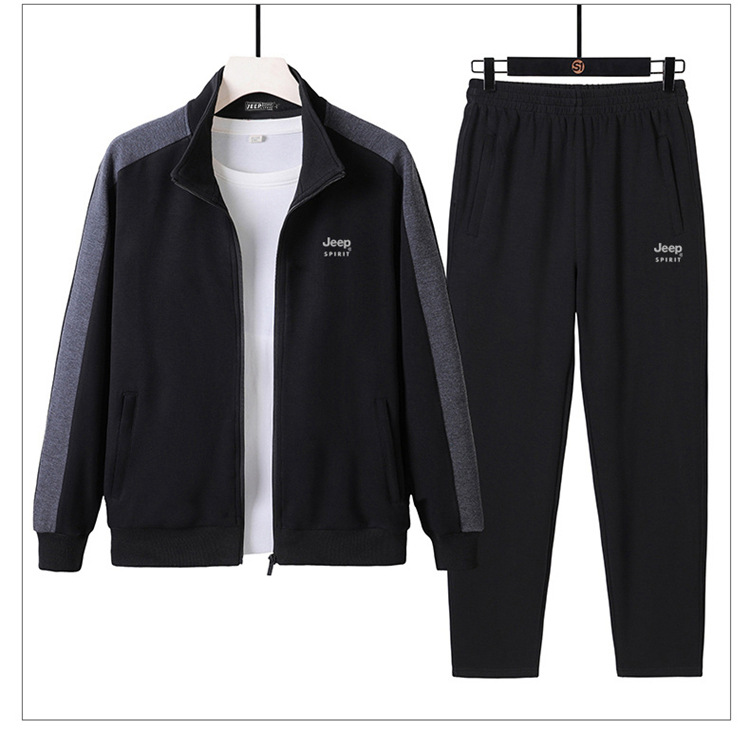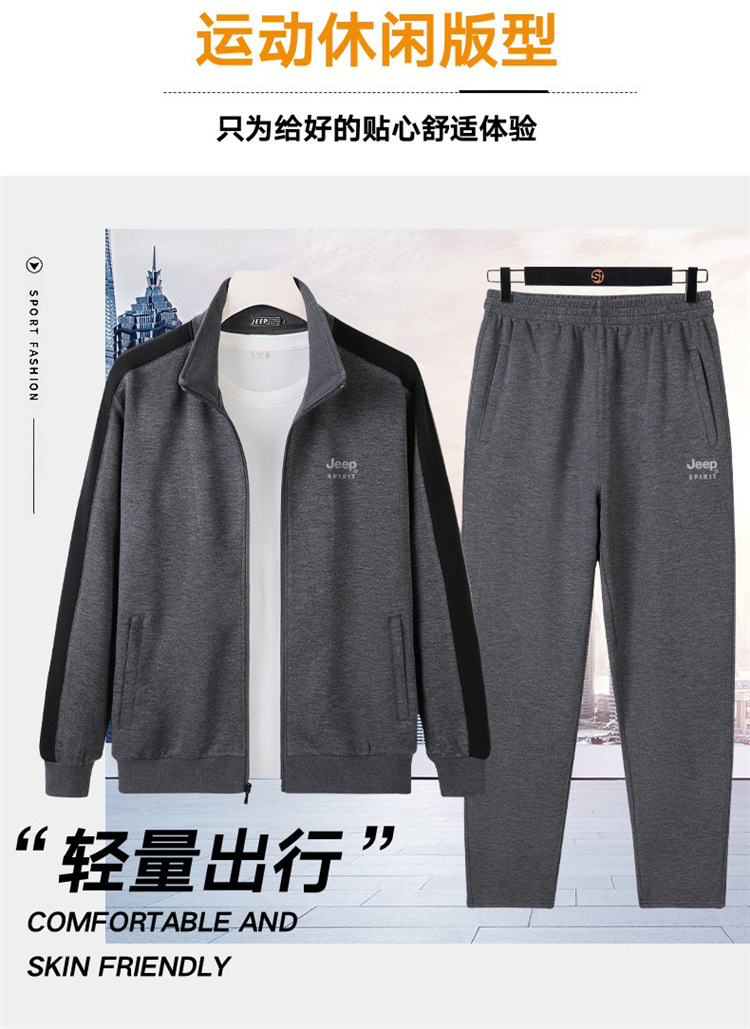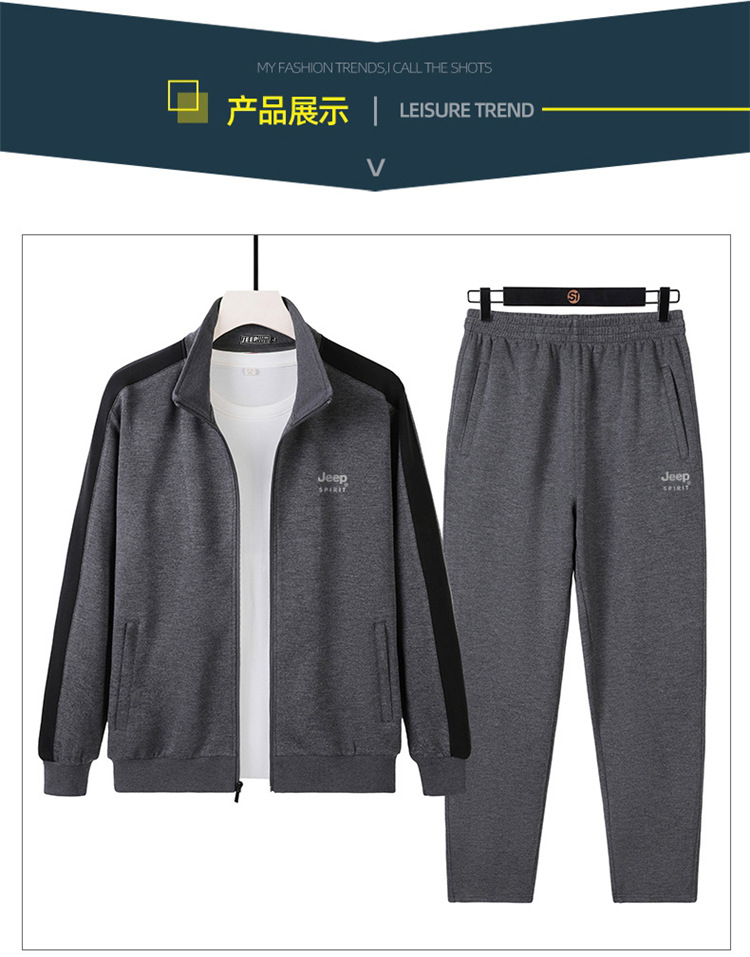丁摩全棉新款运动套装男士春秋跑步运动服两件套灰色黑色普通长5ZF-8070