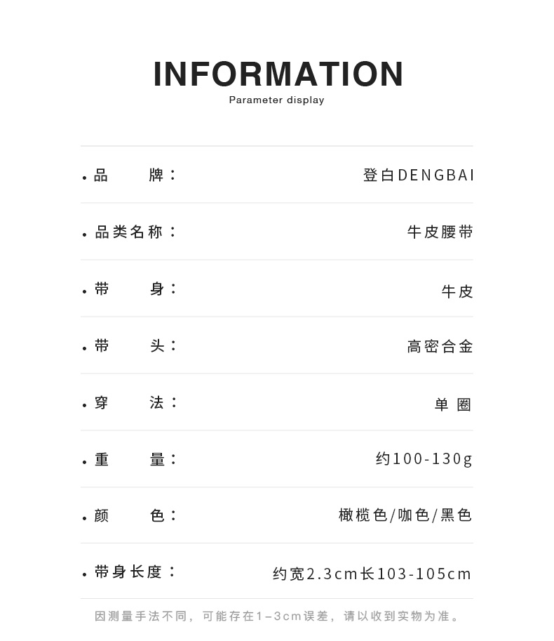 登白DENGBAI 雪花绒无孔牛皮腰带DB3517