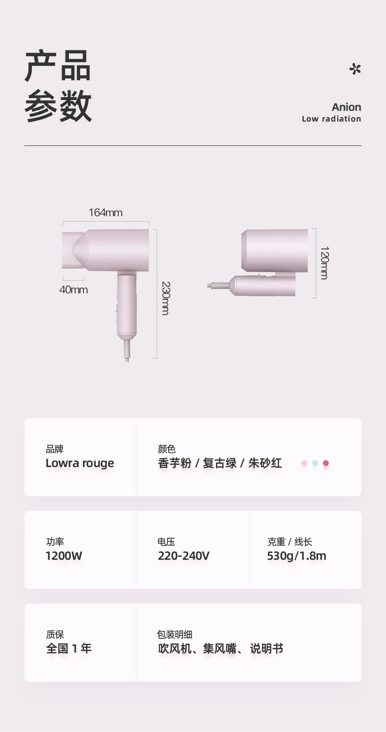 Lowra rouge 罗拉低辐射孕妇负离子吹风机