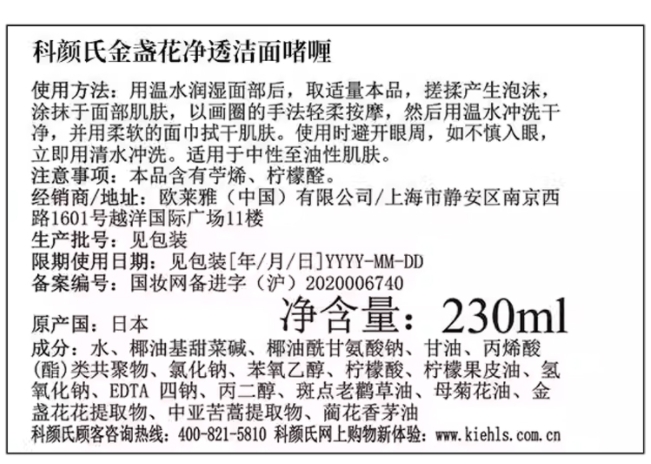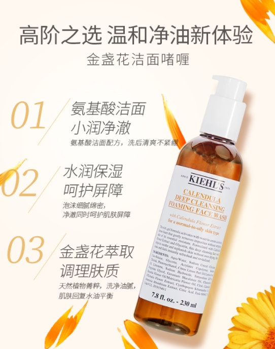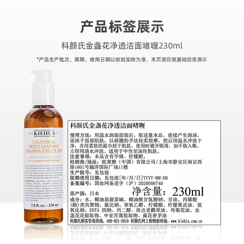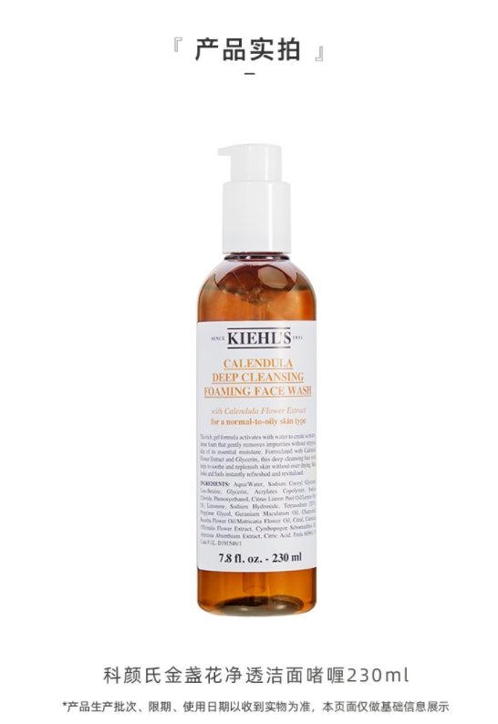 科颜氏金盏花净透洁面啫喱230ml{专柜渠道}【送试用小样】
