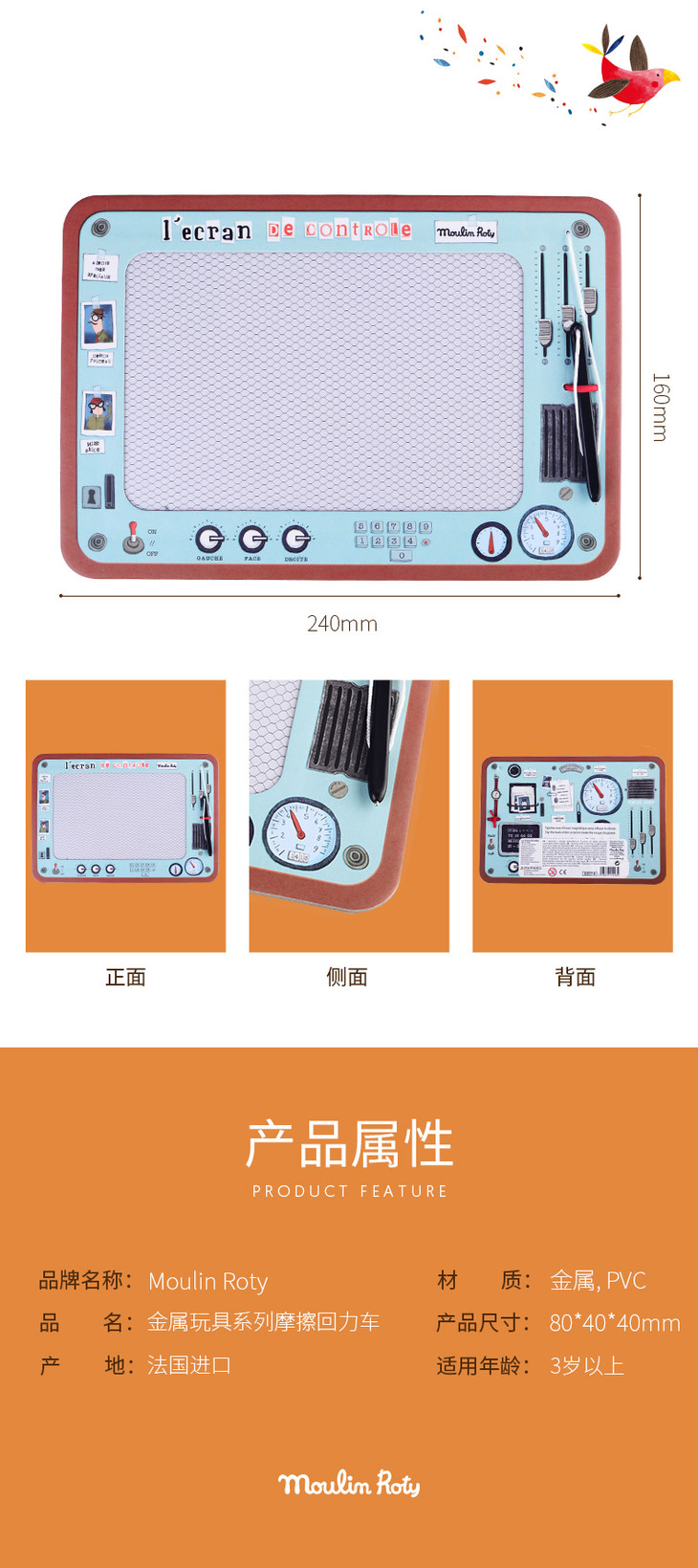 法国moulinroty小小的奇迹系列展示箱包括10件磁性可擦除绘图屏幕与手写笔
