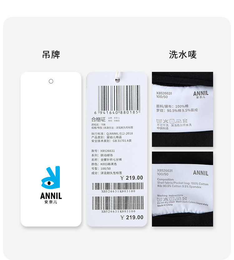 【实体店同款】男童全腰针织七分裤夏季新款安奈儿童装XB526631