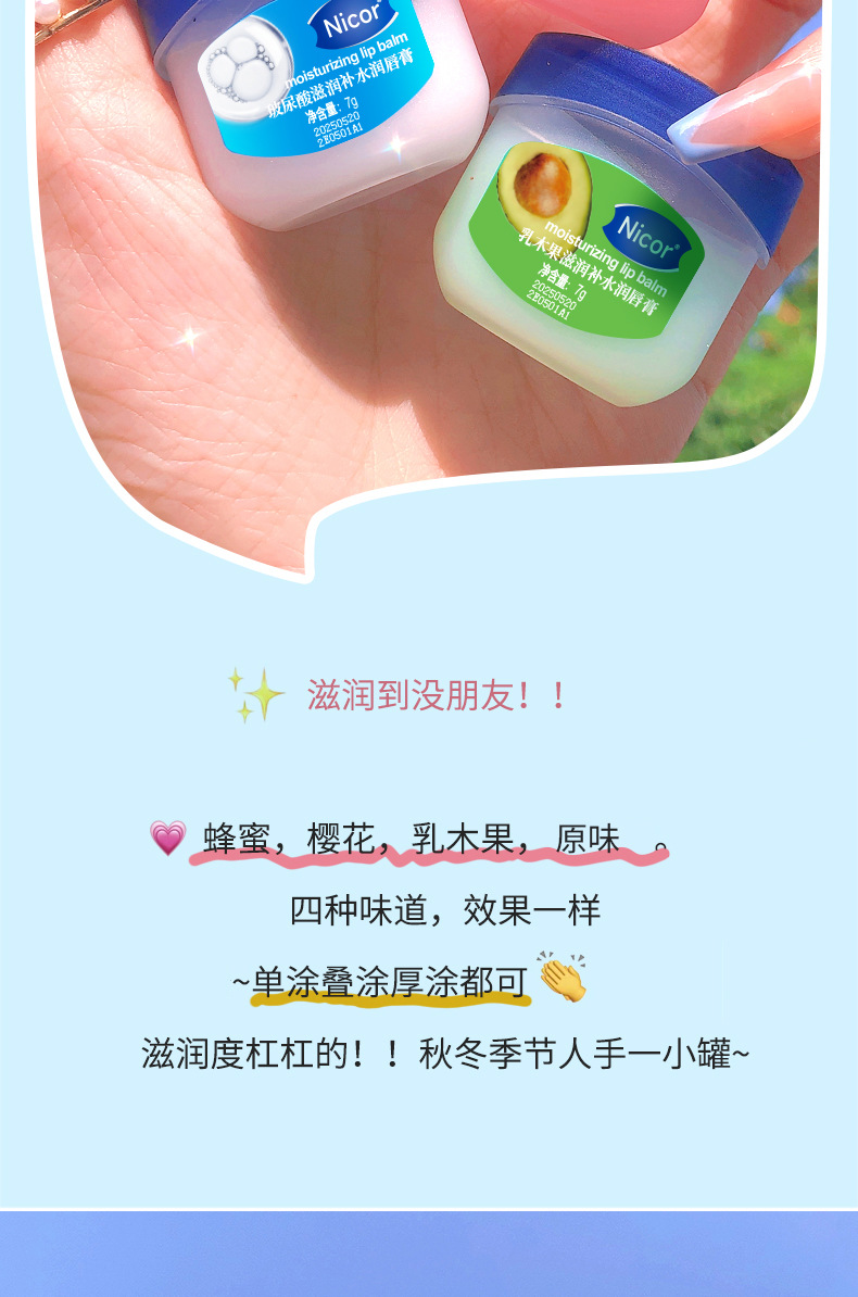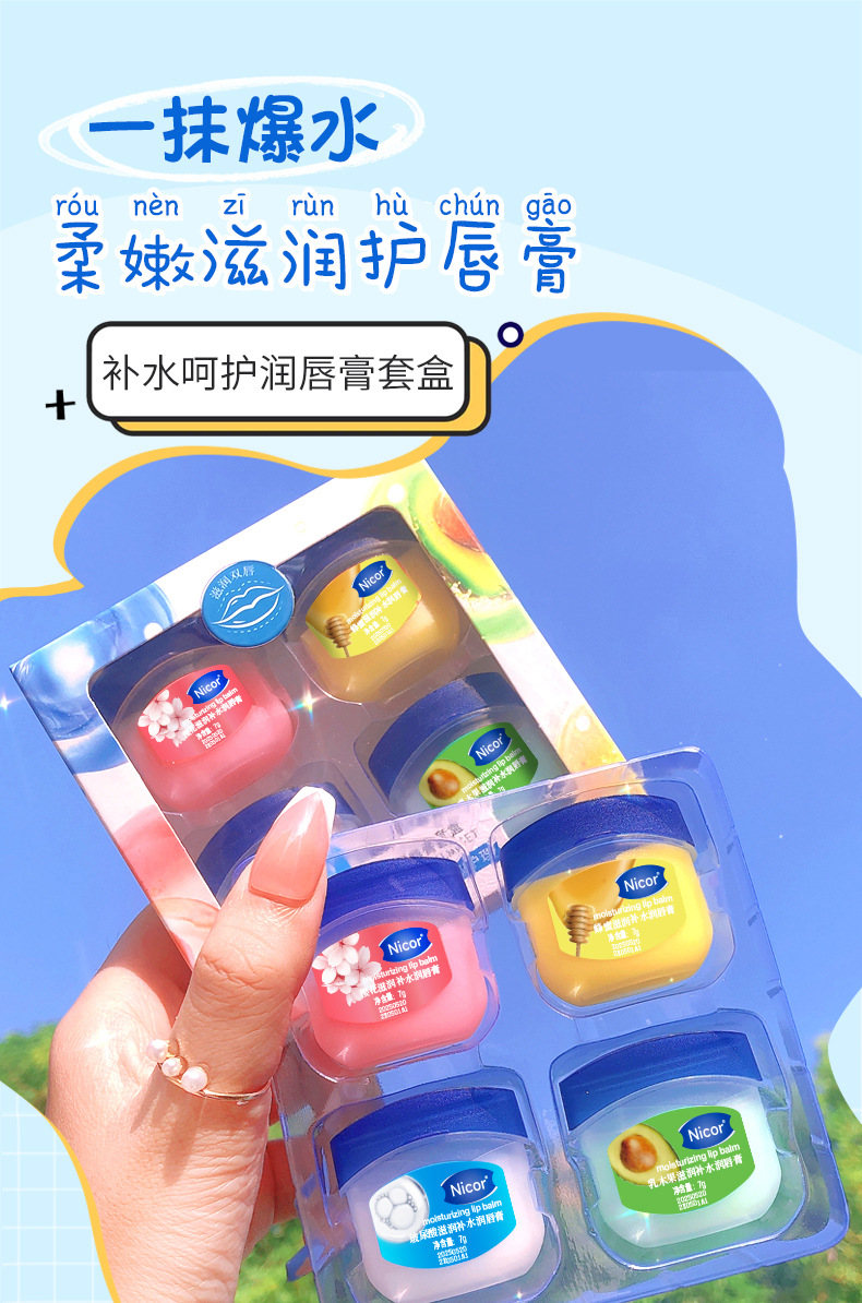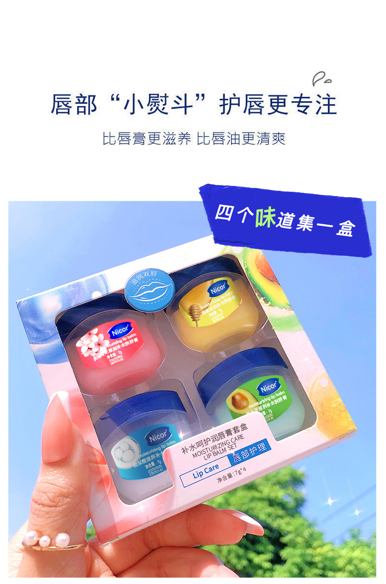 星罗9.9/4支 Nicor凡士林唇膜四色唇膜润唇膏 唇部护理防干裂套装